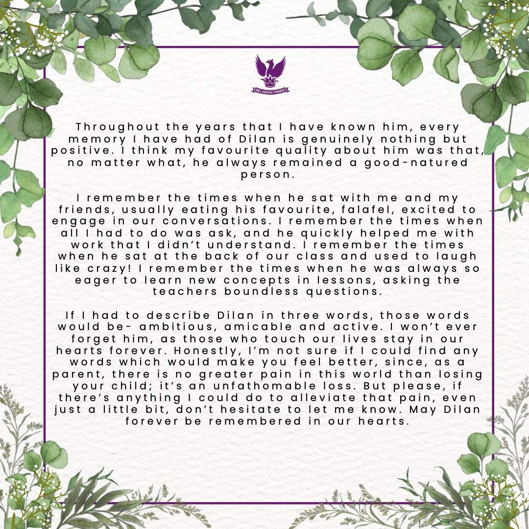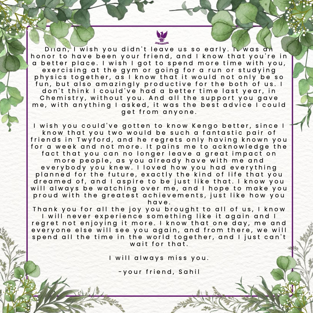 It is with great sadness that we come together to remember Dilan Jai Khurana.