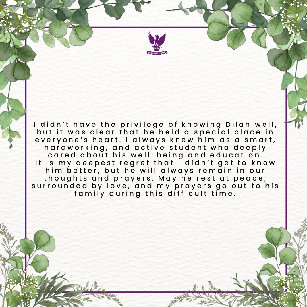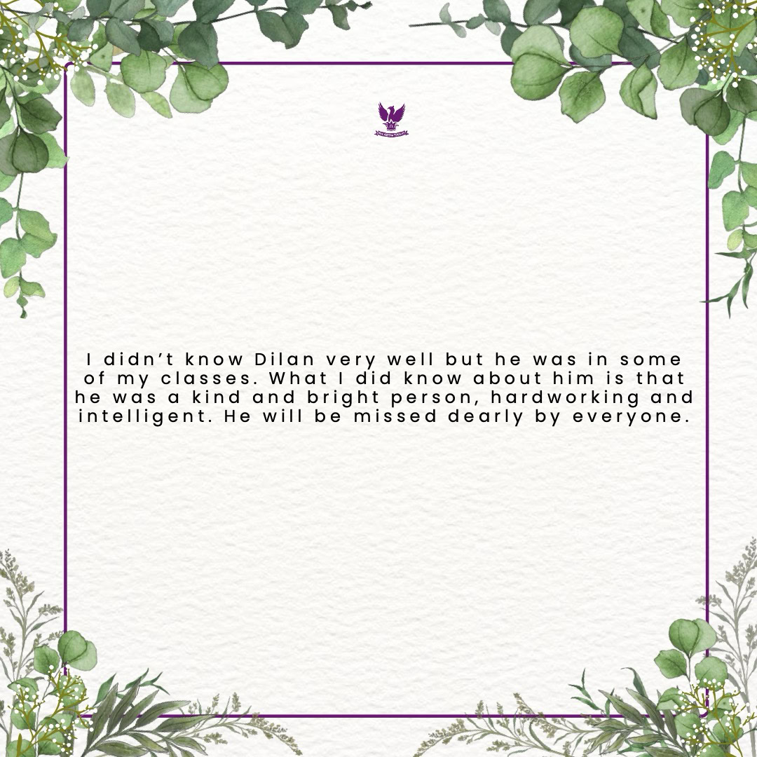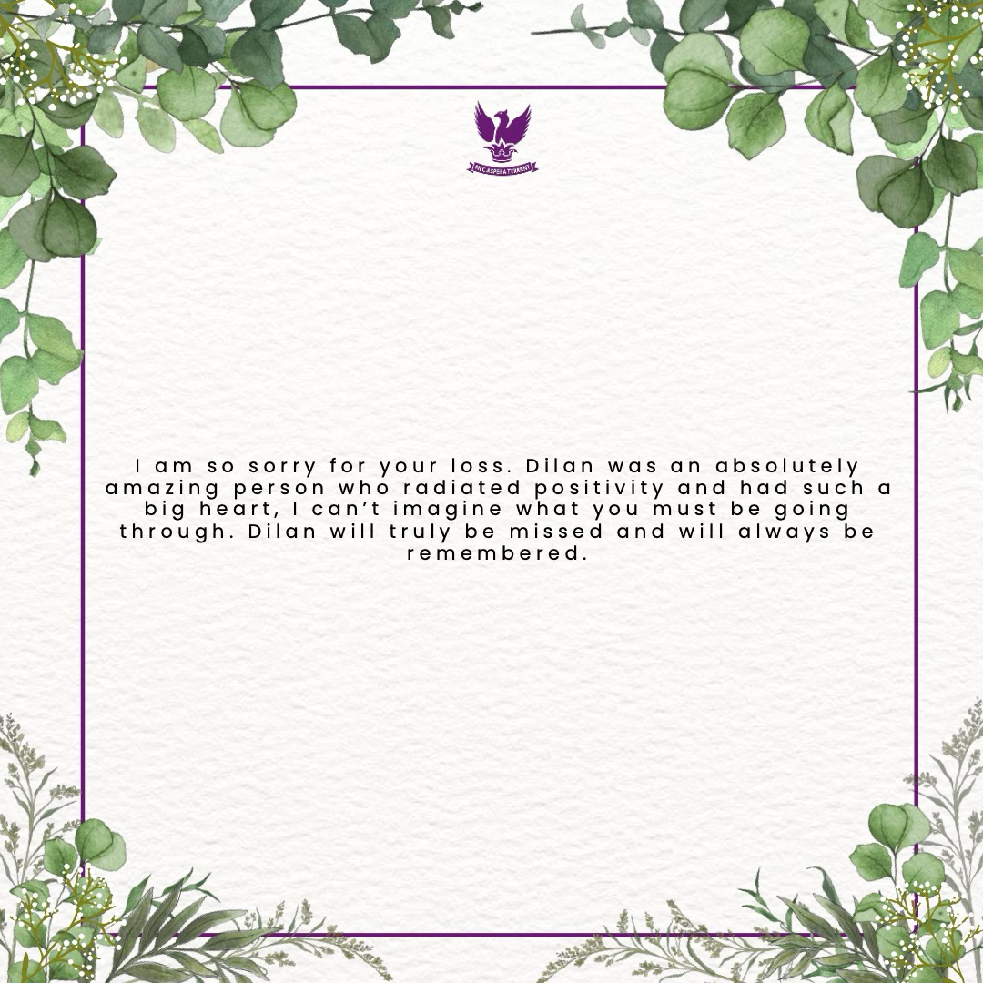 As you read through these messages, we hope you’ll find comfort in knowing the many ways Dilan’s presence brightened our community. Our deepest condolences and thoughts are with his family and loved ones during this incredibly difficult time.