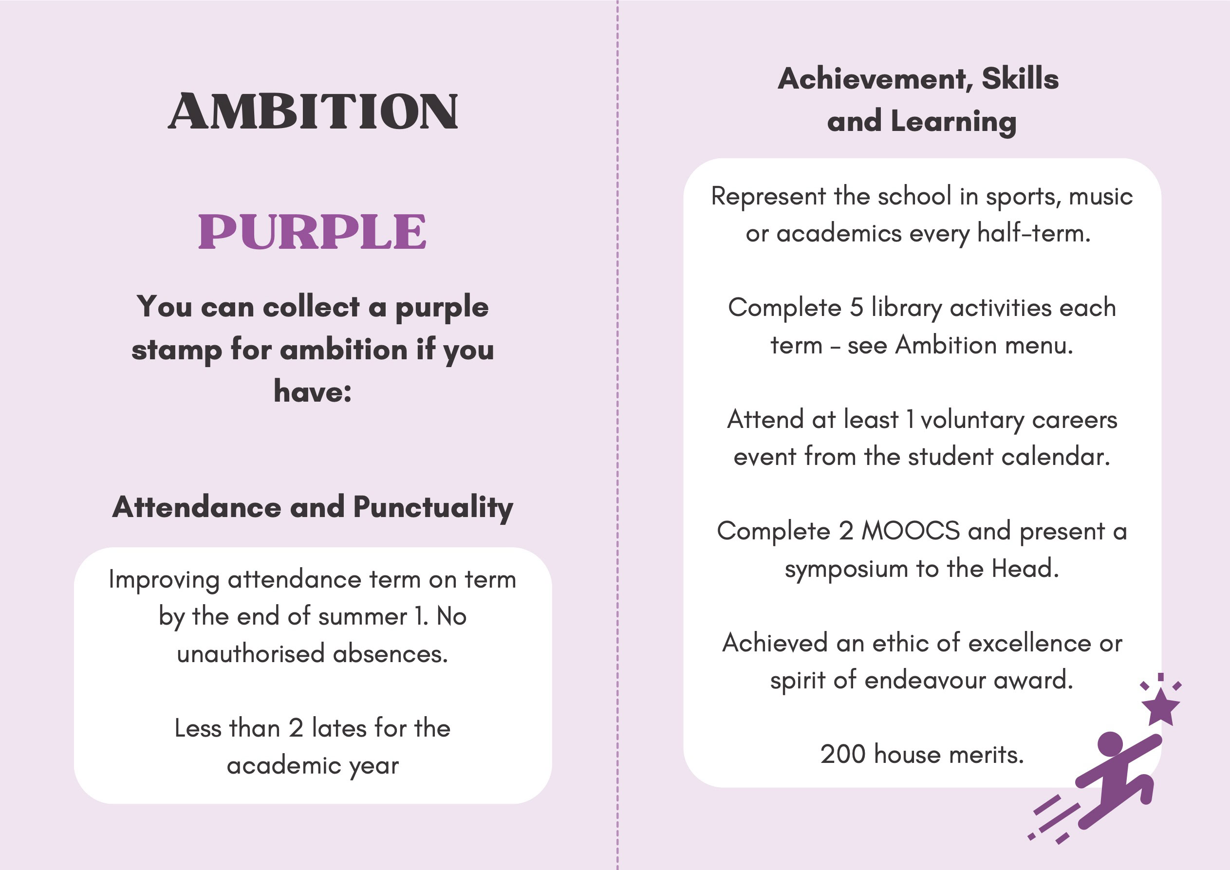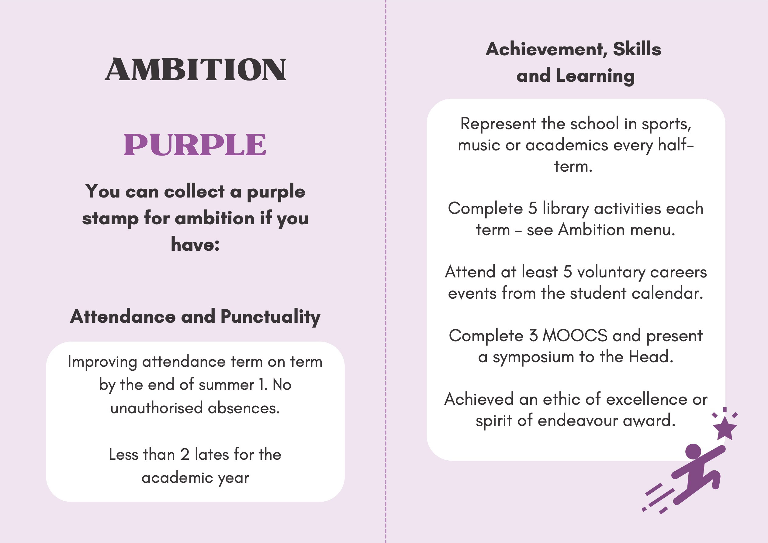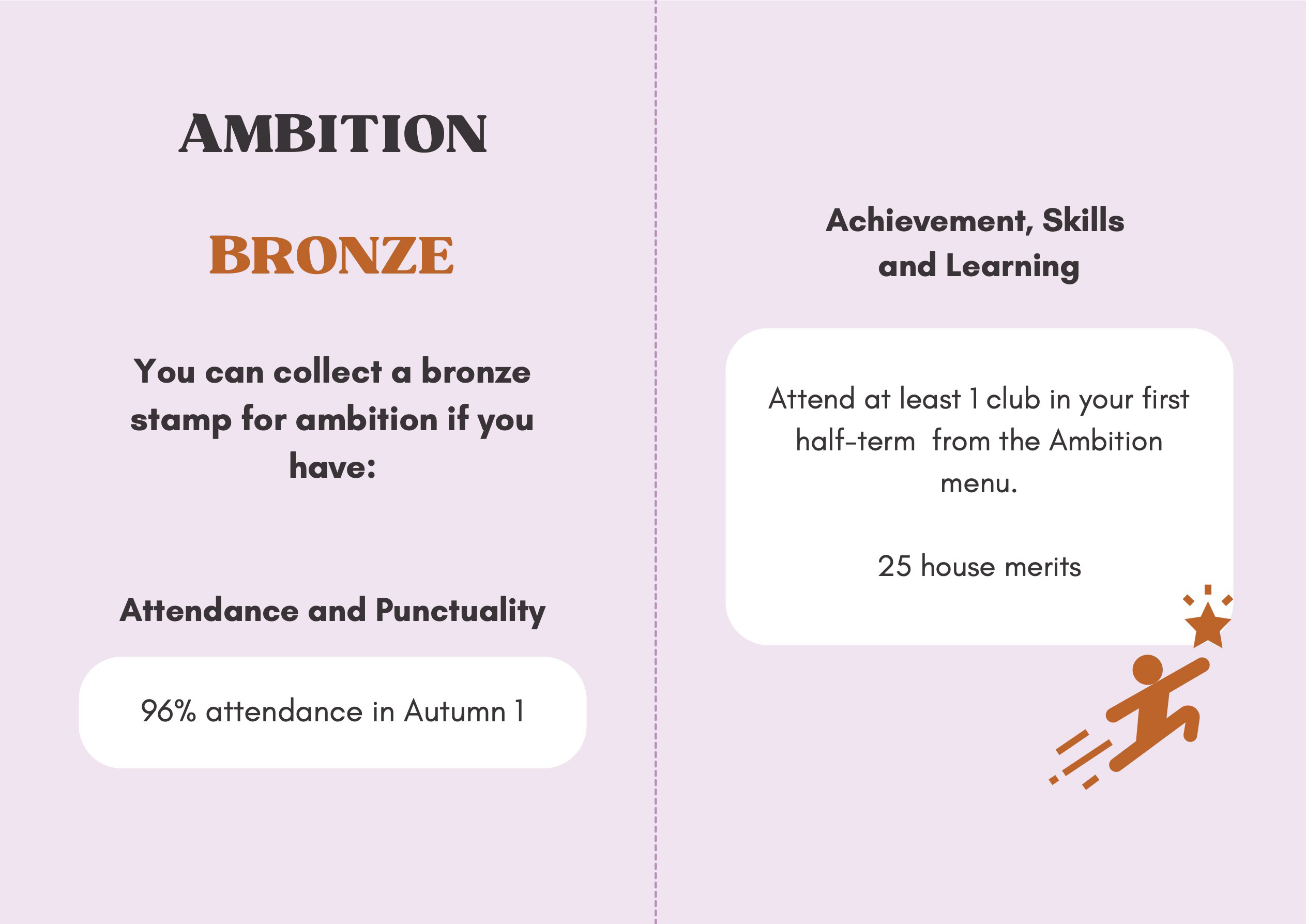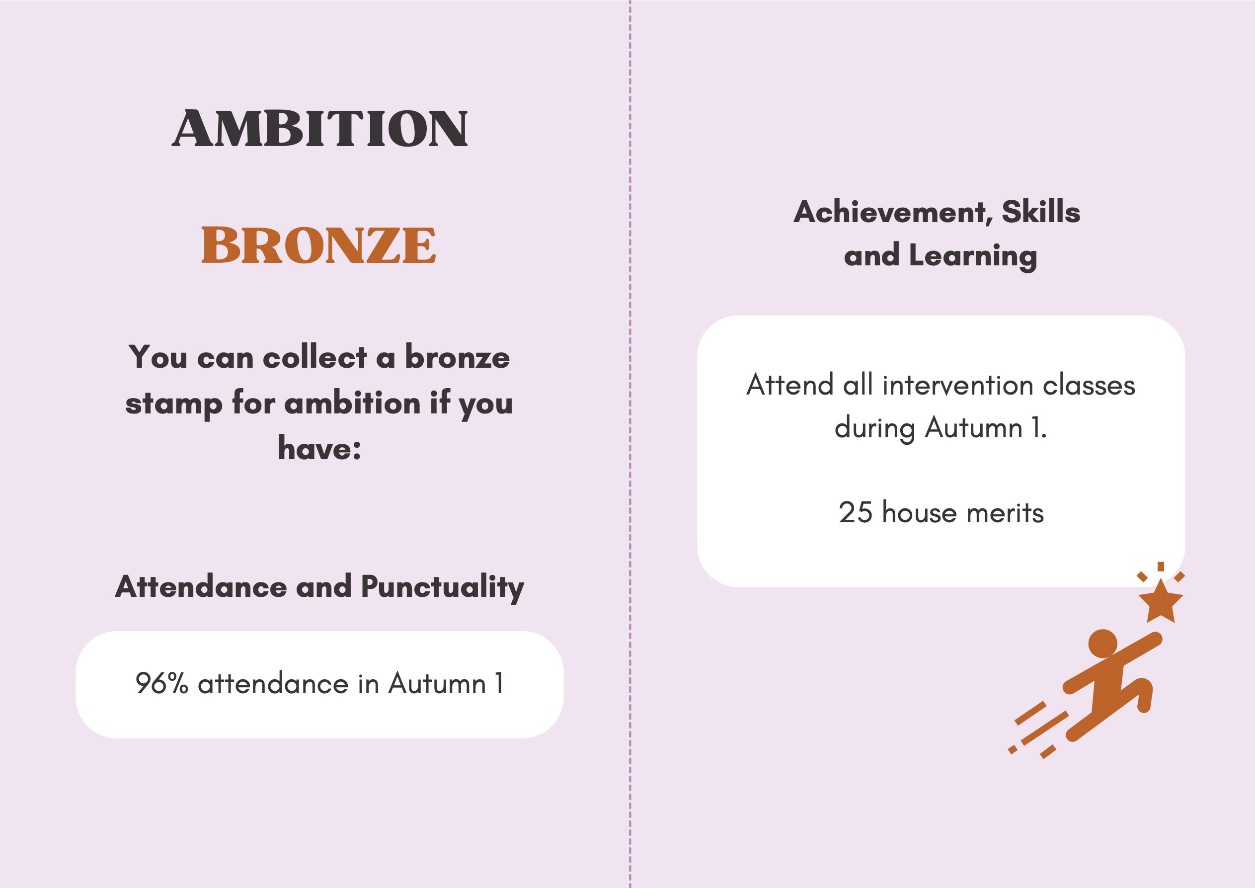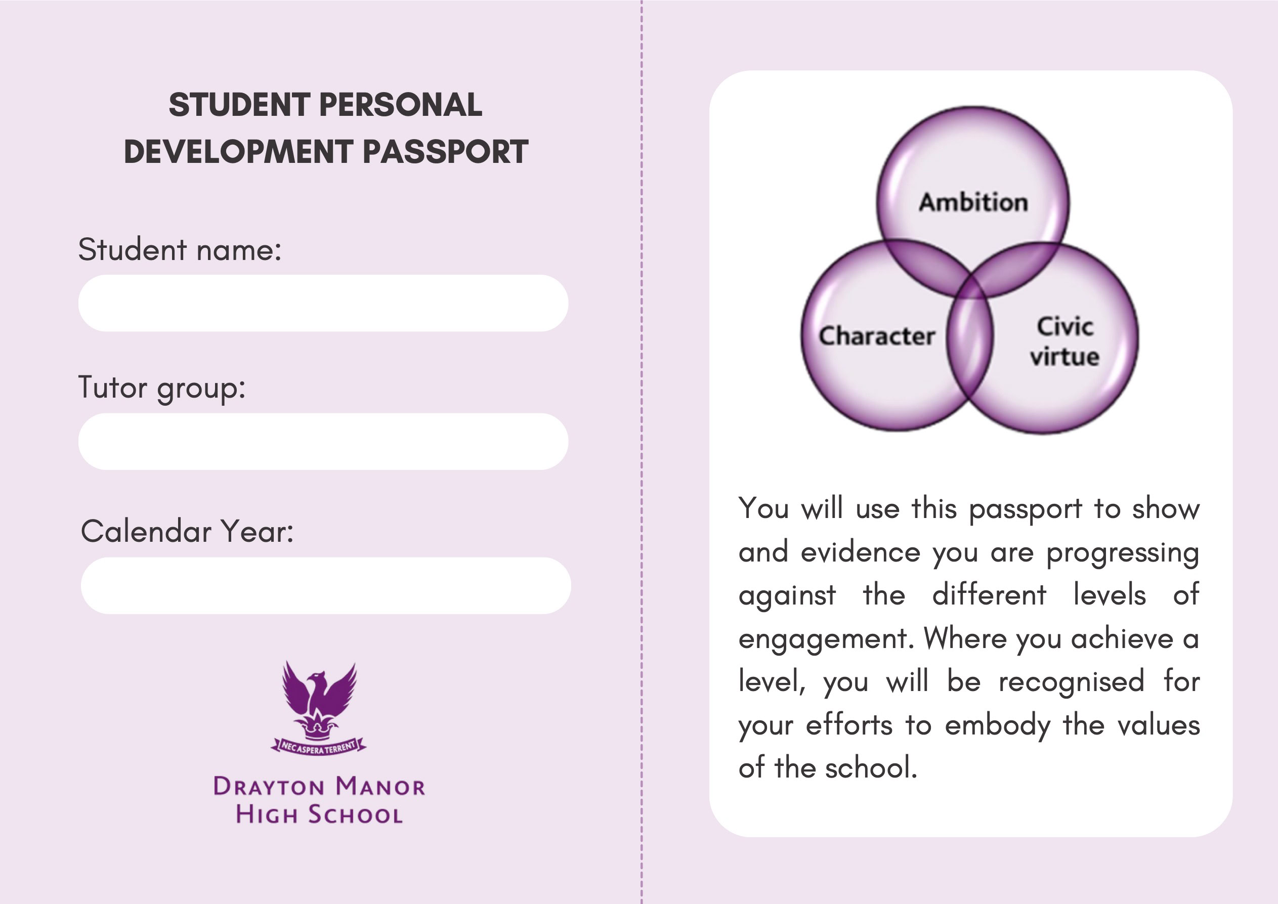 To recognise and celebrate student achievements, the Personal Development Passport is linked to our award system. Students can earn awards at four levels - Bronze, Silver, Gold, and Purple - across three core values: Ambition, Character, and Civic Virtue. Awards are presented at termly celebrations, acknowledging students’ dedication and fostering a culture of active participation.