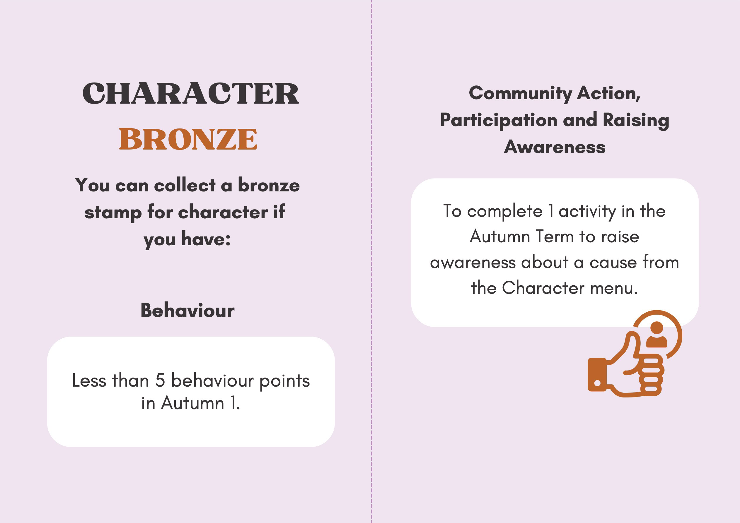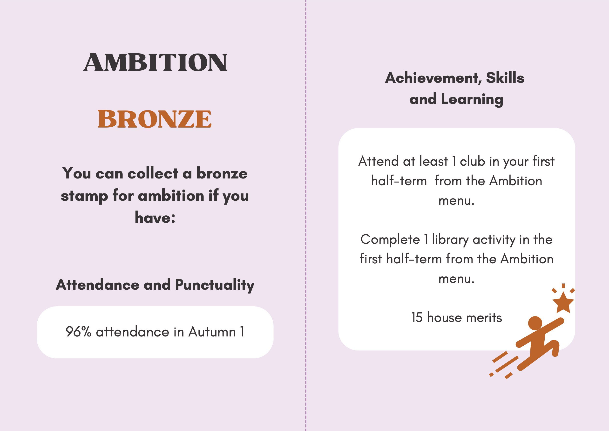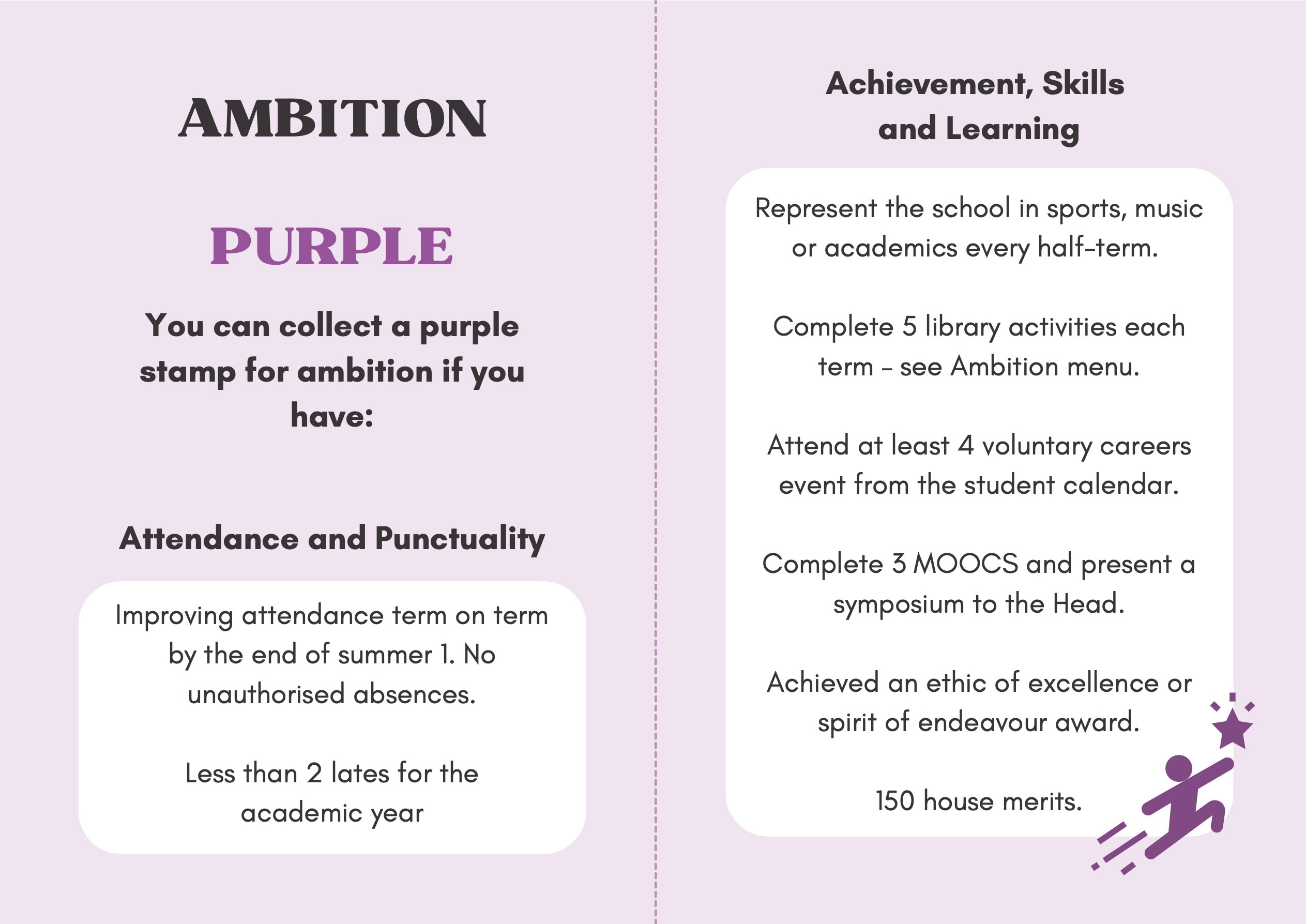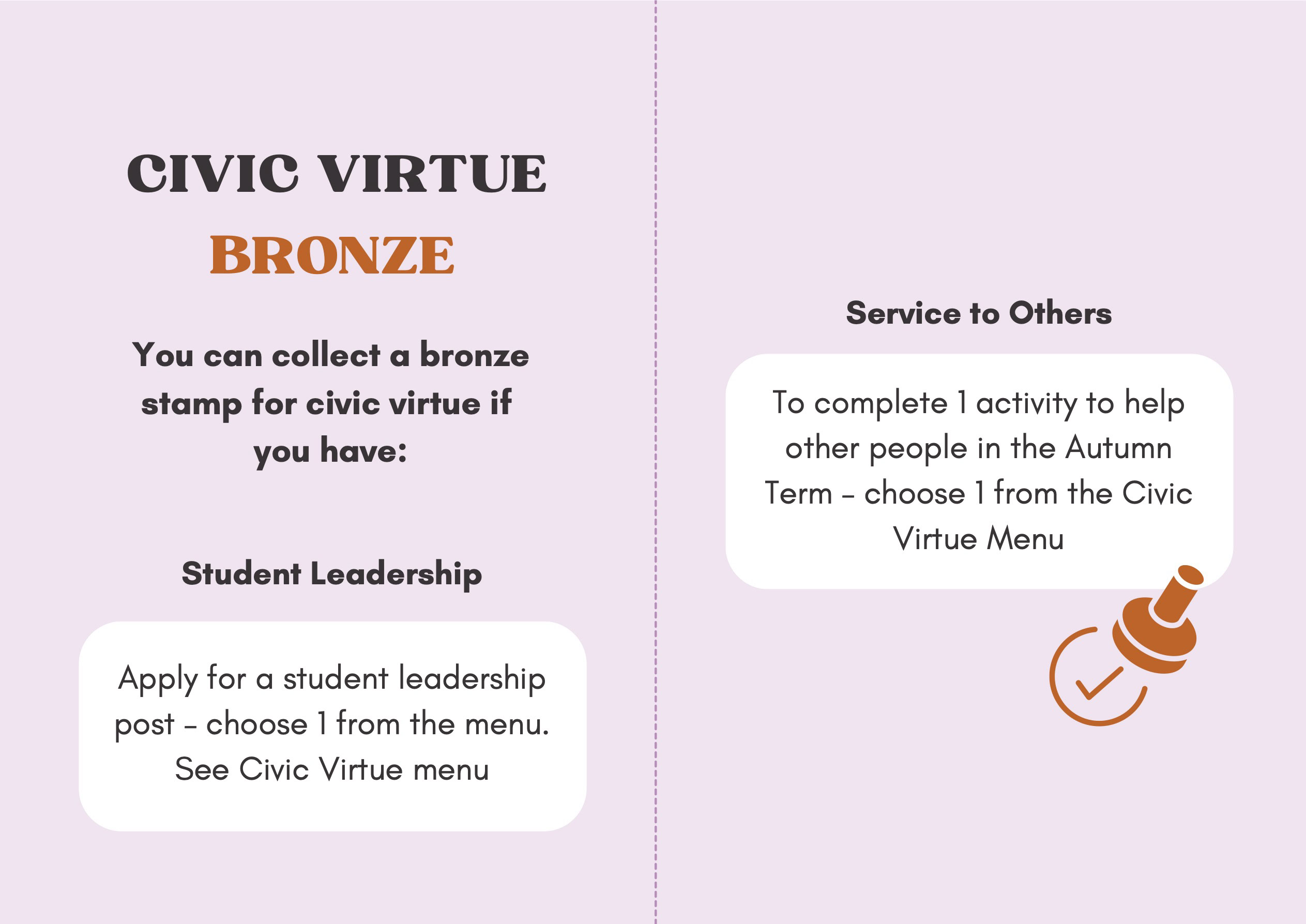 To recognise and celebrate student achievements, the Personal Development Passport is linked to our award system. Students can earn awards at four levels - Bronze, Silver, Gold, and Purple - across three core values: Ambition, Character, and Civic Virtue. Awards are presented at termly celebrations, acknowledging students’ dedication and fostering a culture of active participation.