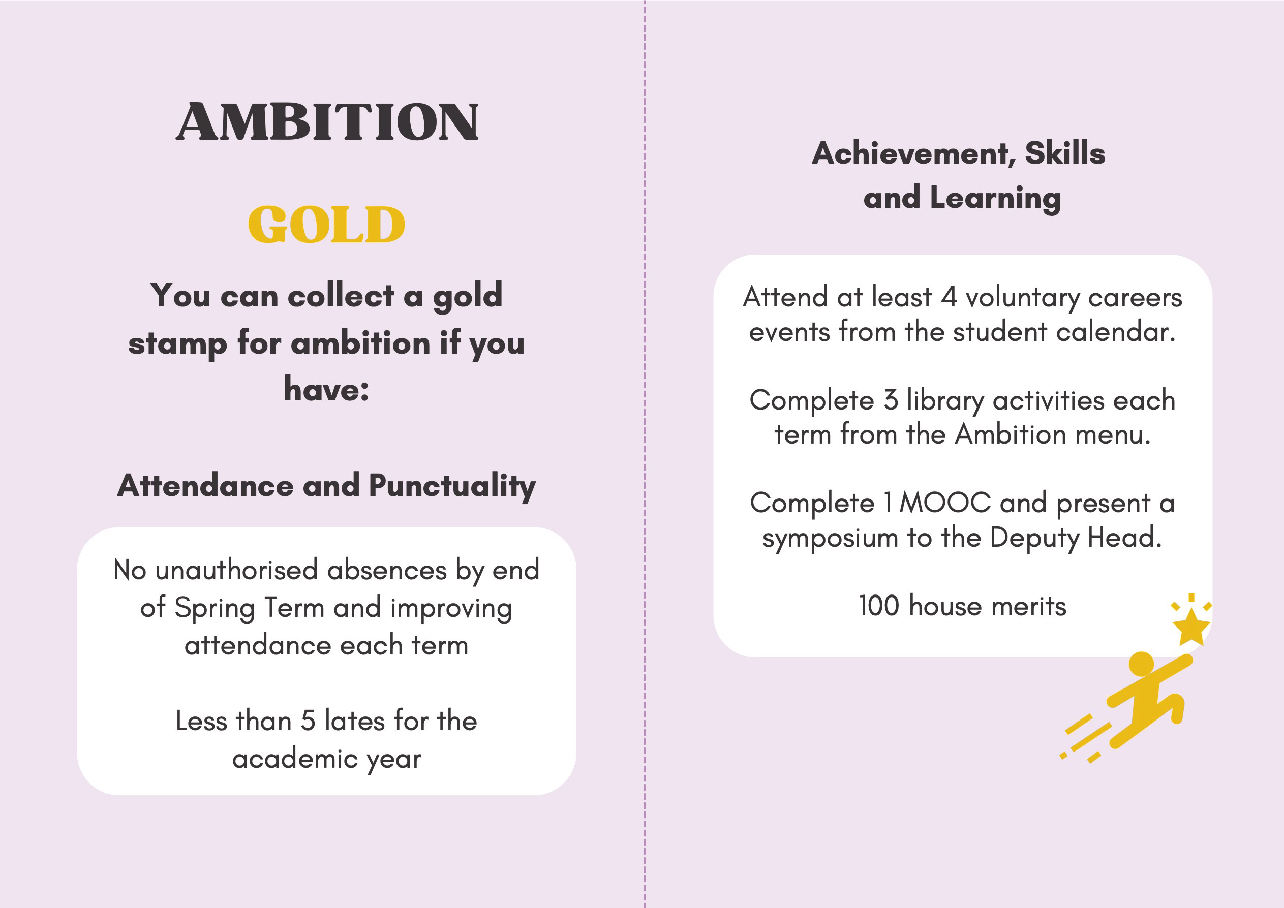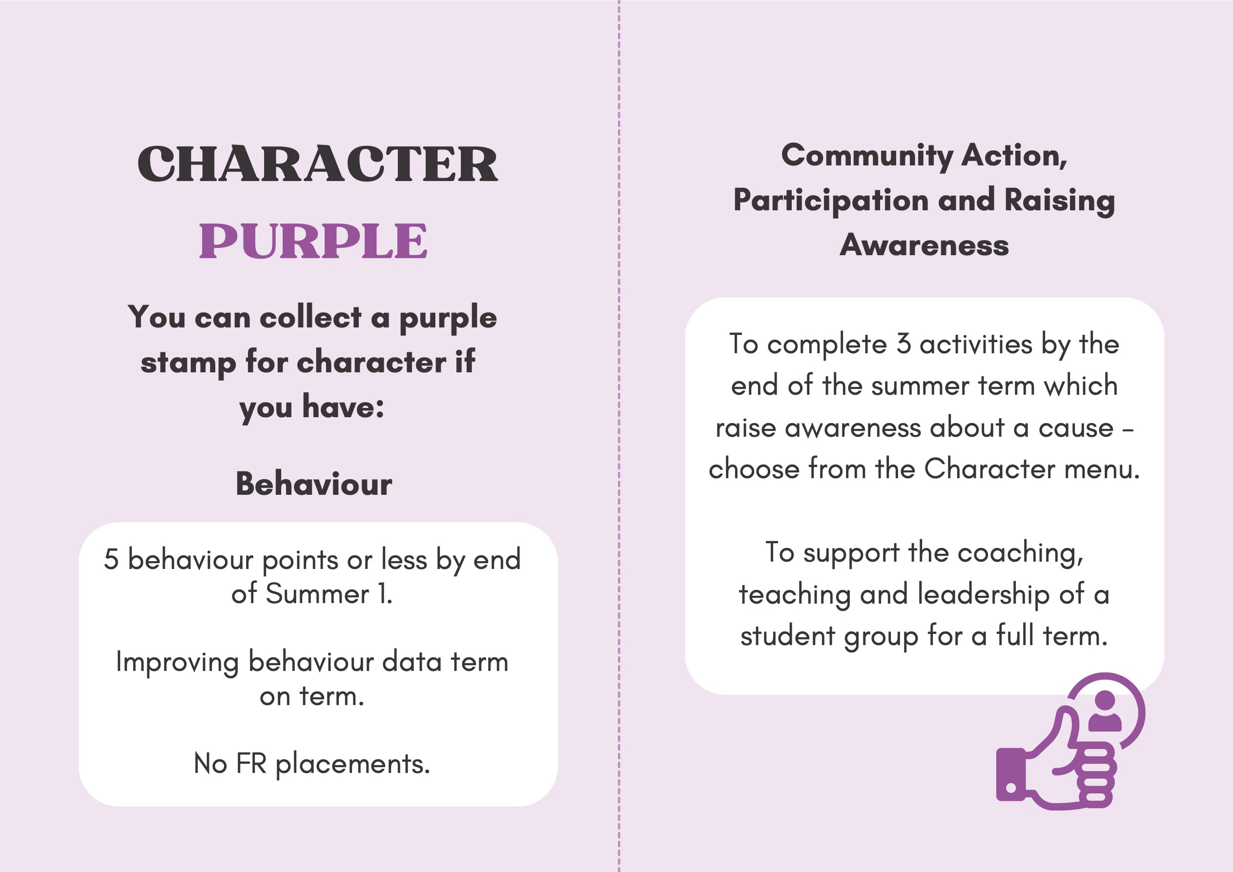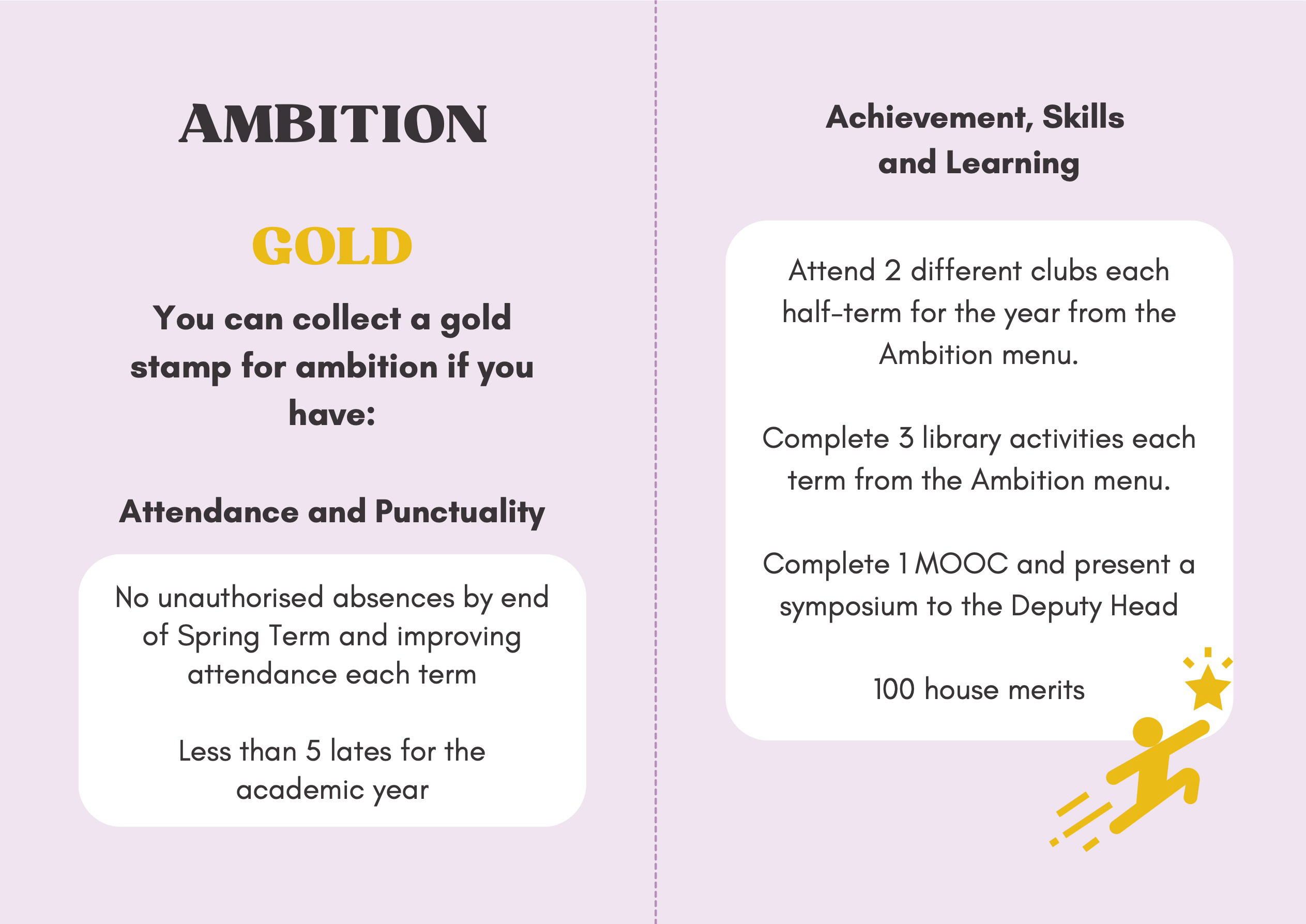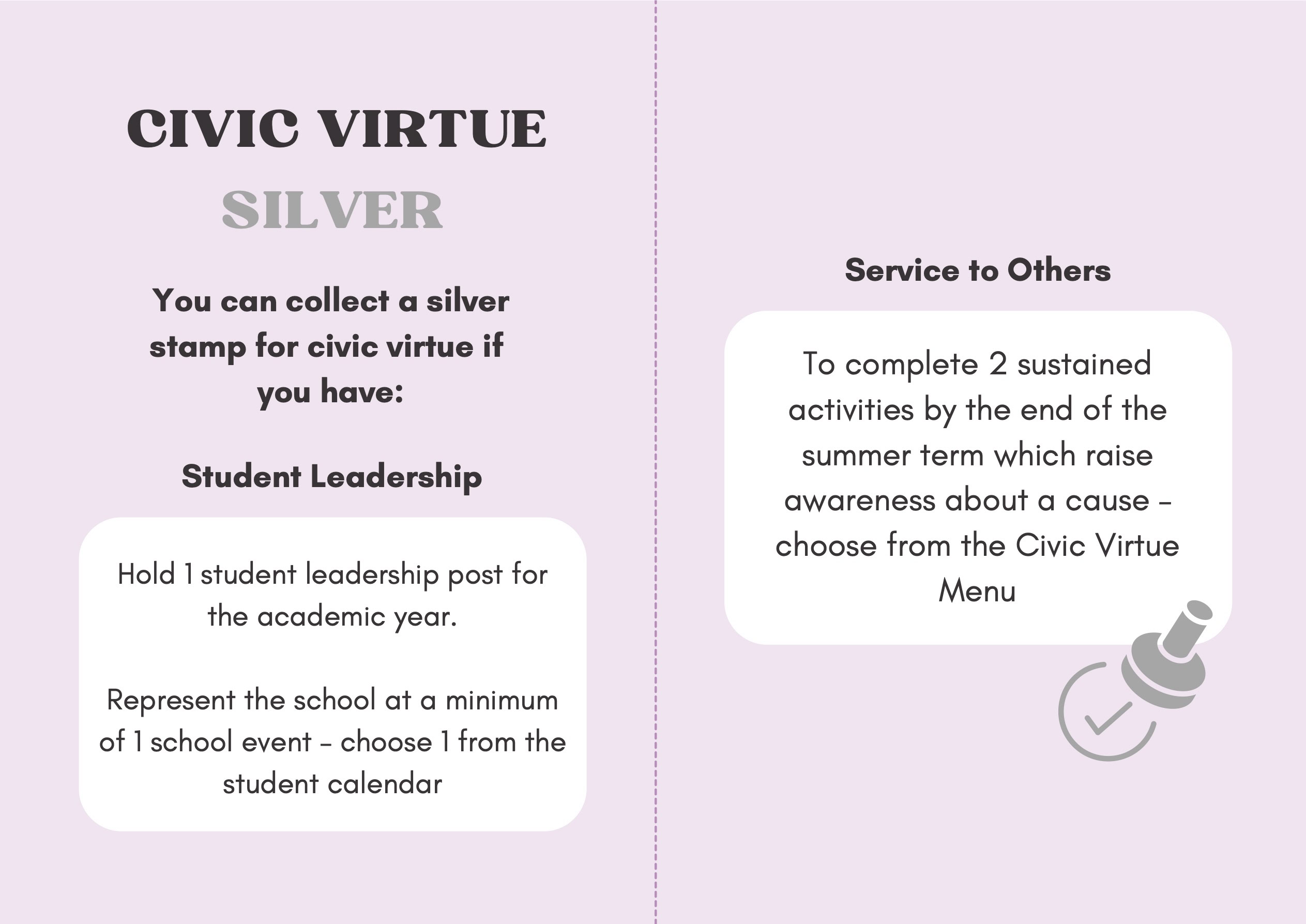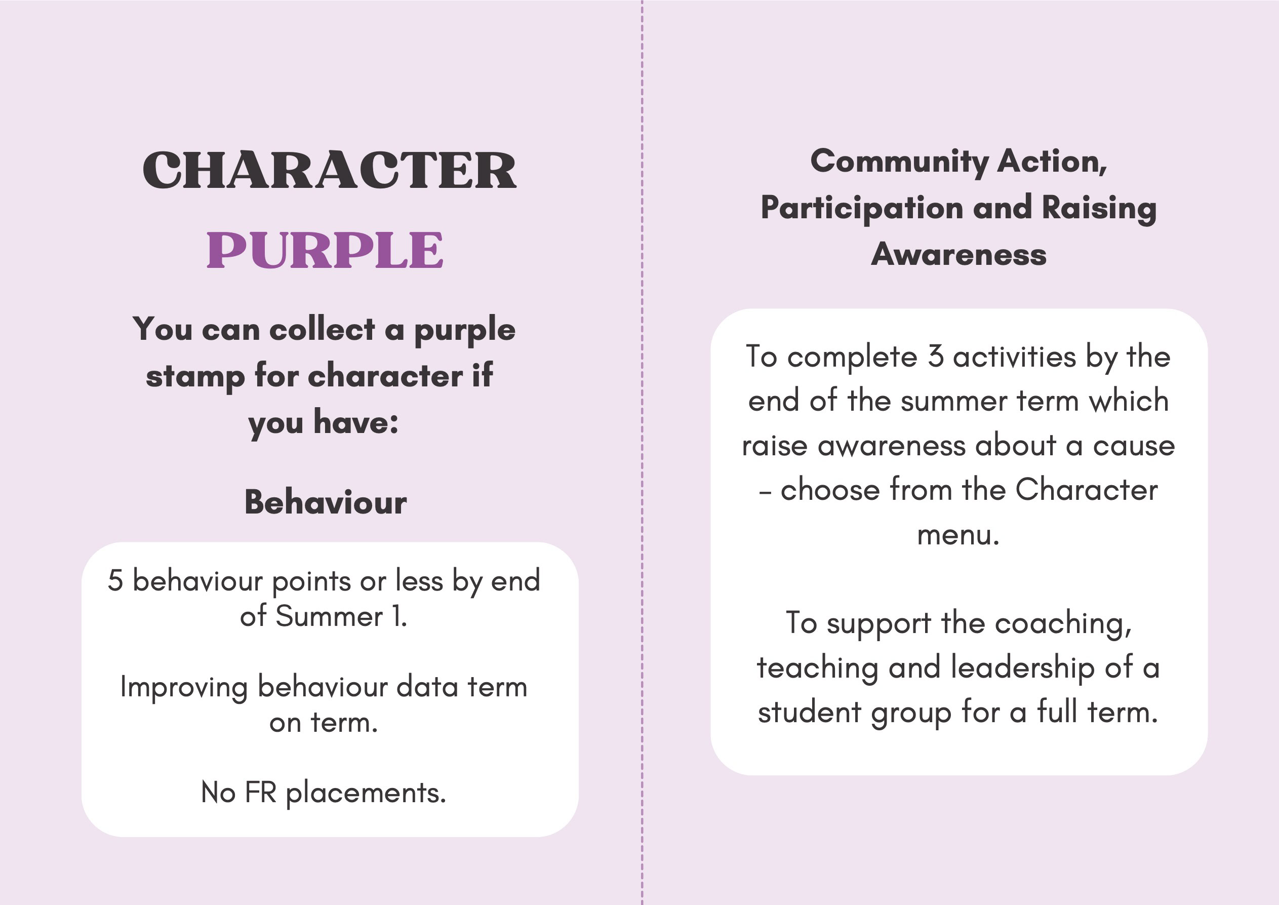 To recognise and celebrate student achievements, the Personal Development Passport is linked to our award system. Students can earn awards at four levels - Bronze, Silver, Gold, and Purple - across three core values: Ambition, Character, and Civic Virtue. Awards are presented at termly celebrations, acknowledging students’ dedication and fostering a culture of active participation.