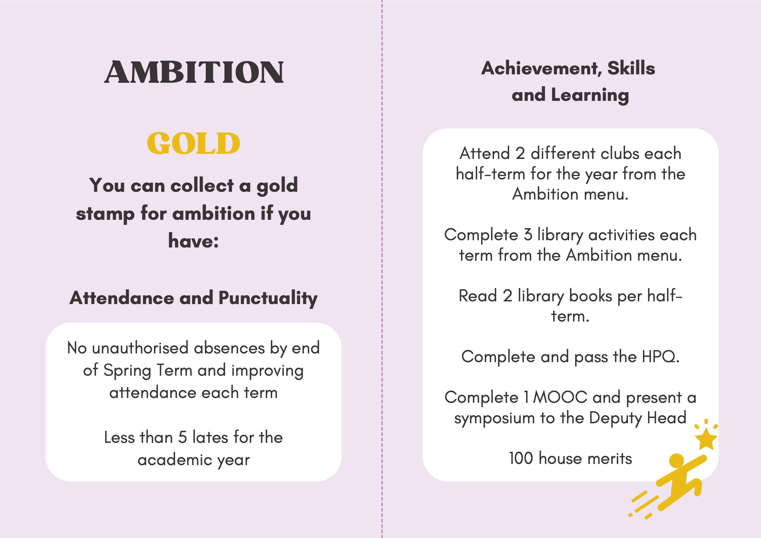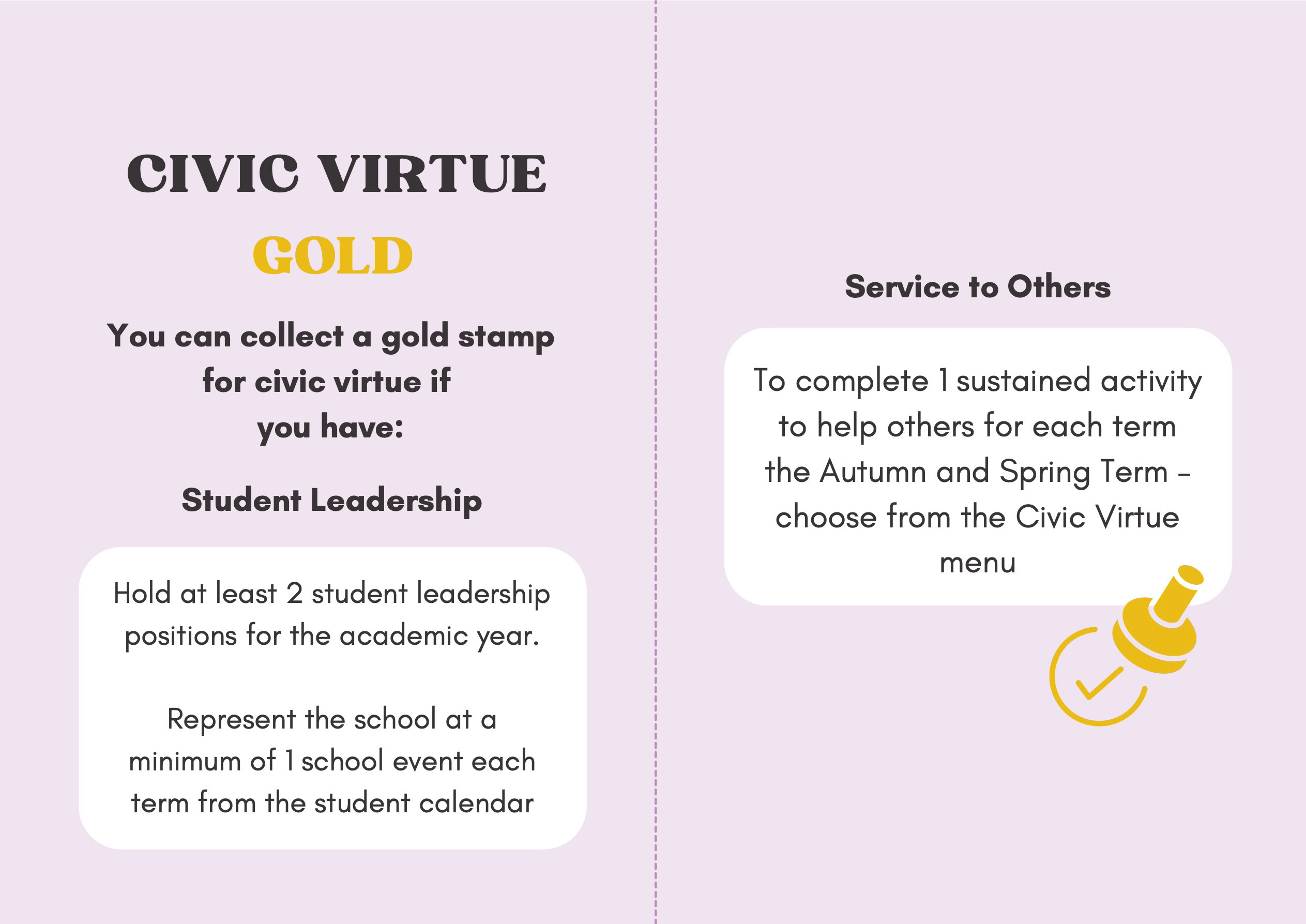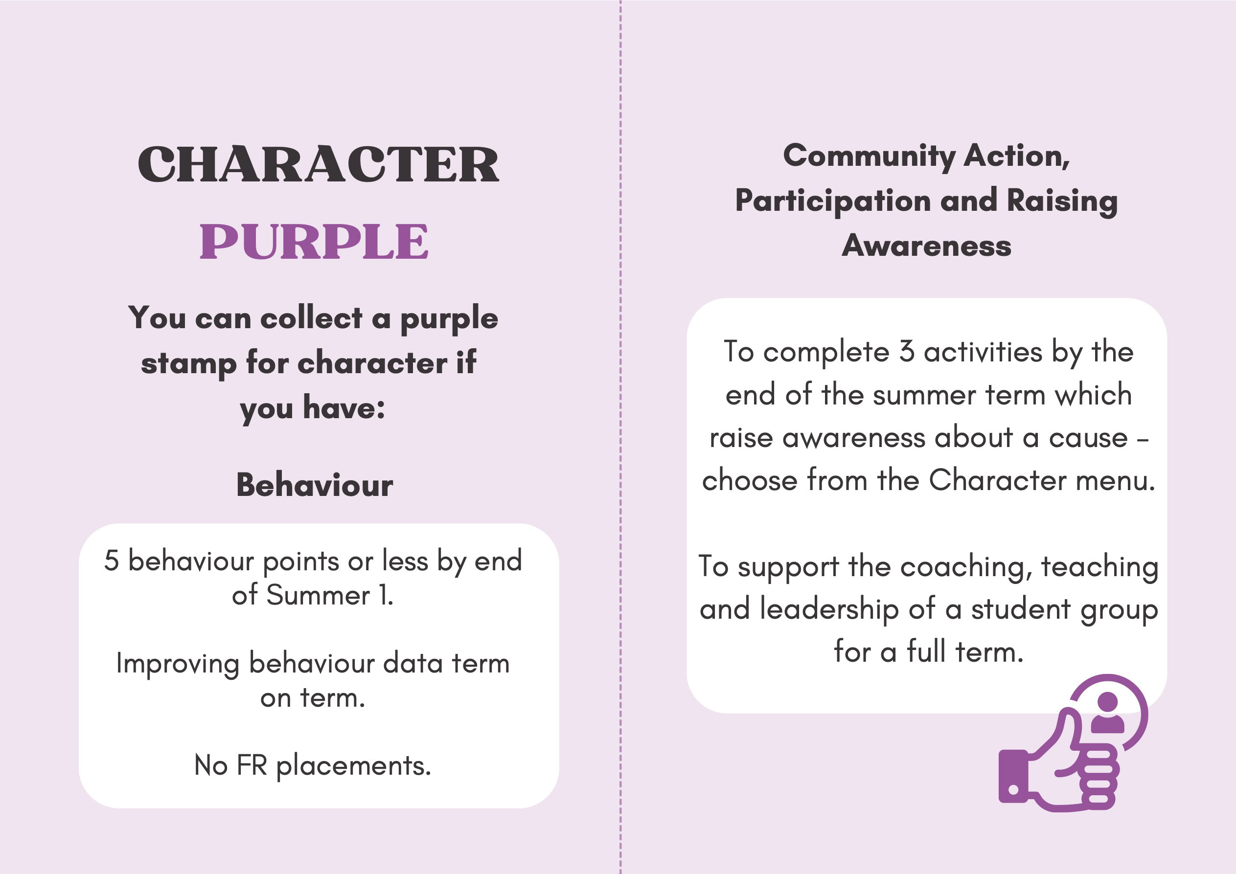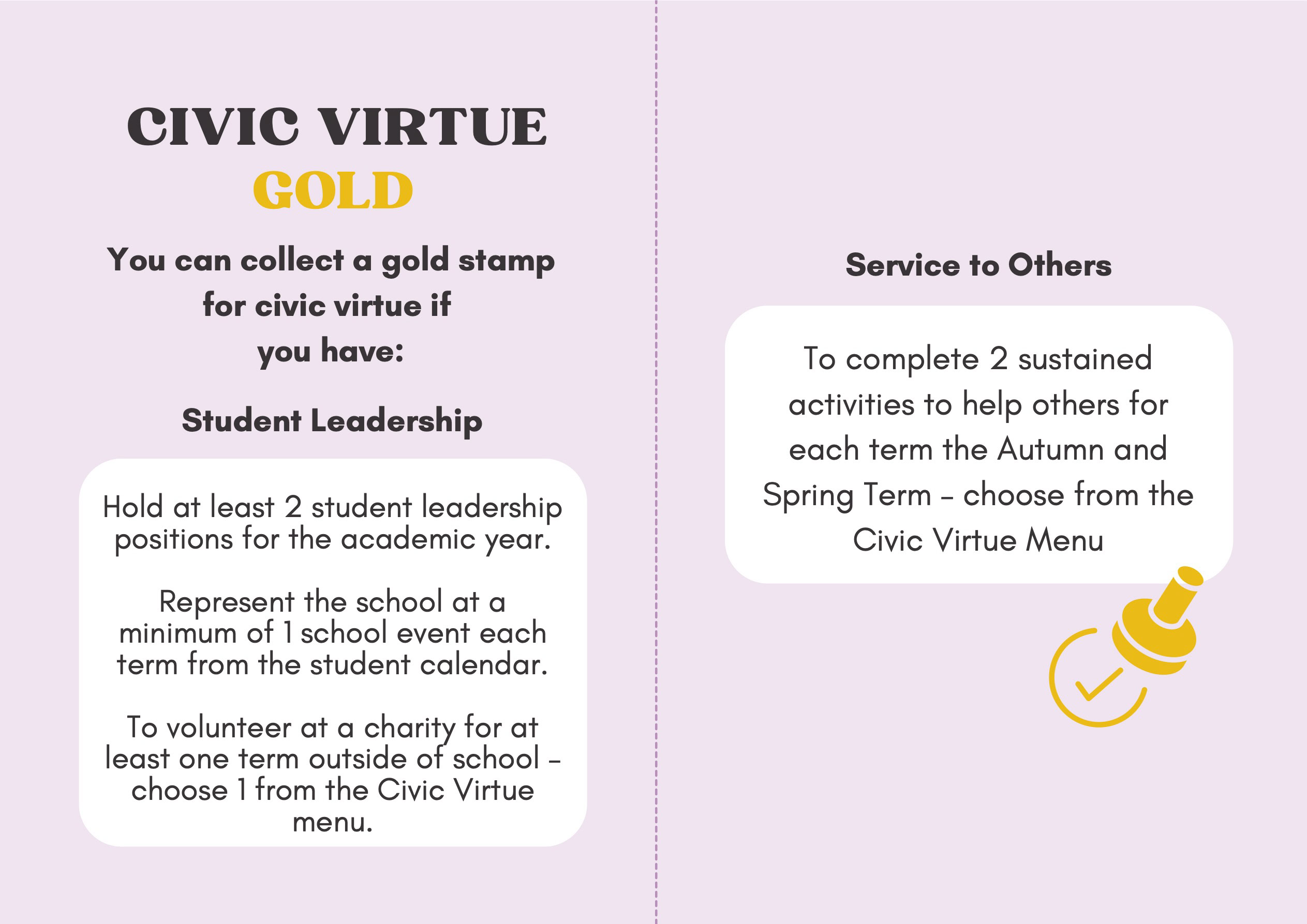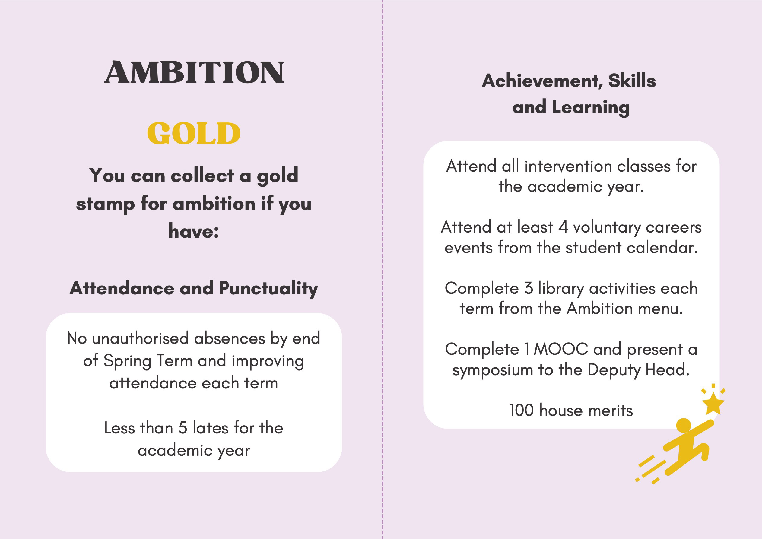 To recognise and celebrate student achievements, the Personal Development Passport is linked to our award system. Students can earn awards at four levels - Bronze, Silver, Gold, and Purple - across three core values: Ambition, Character, and Civic Virtue. Awards are presented at termly celebrations, acknowledging students’ dedication and fostering a culture of active participation.
