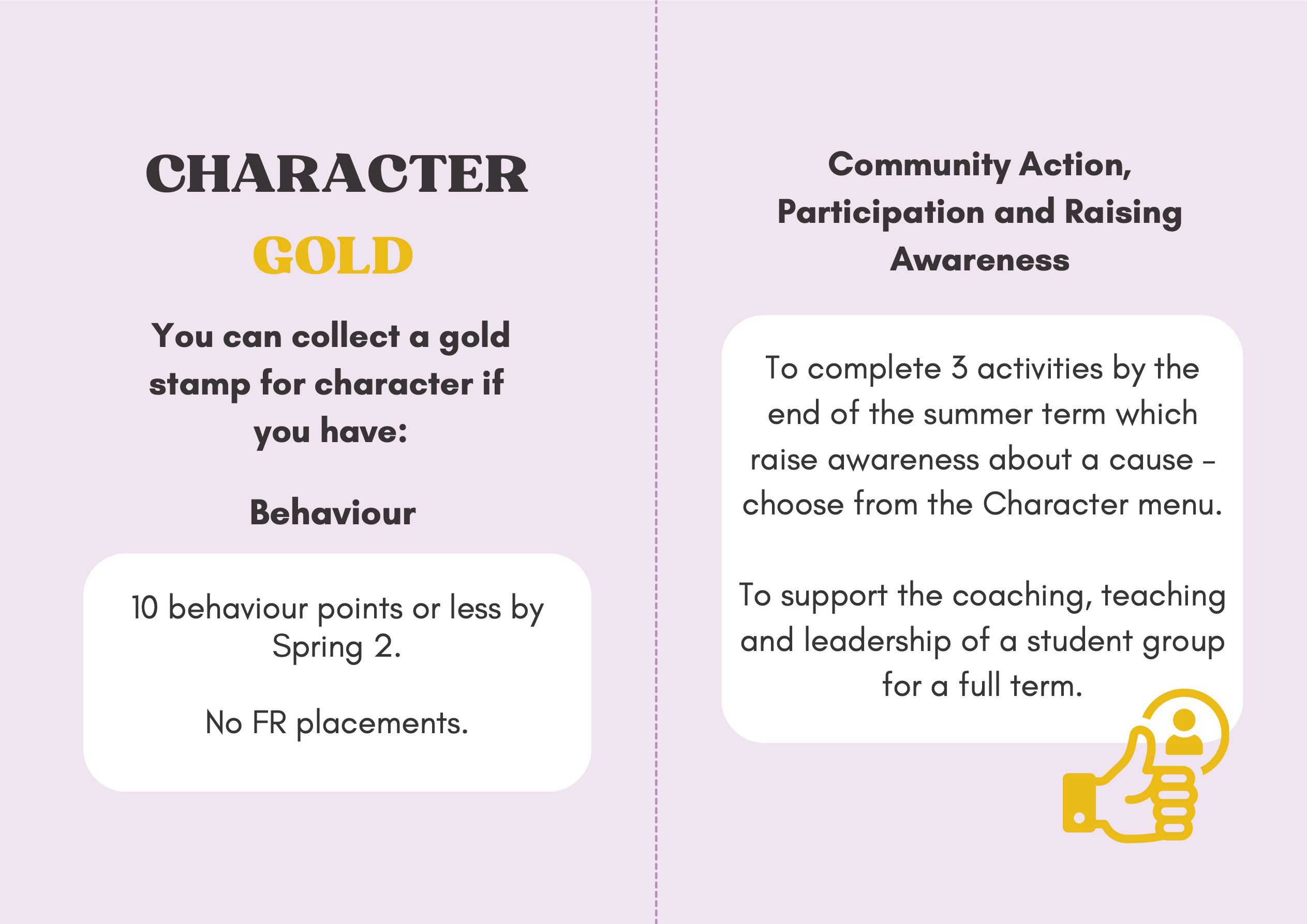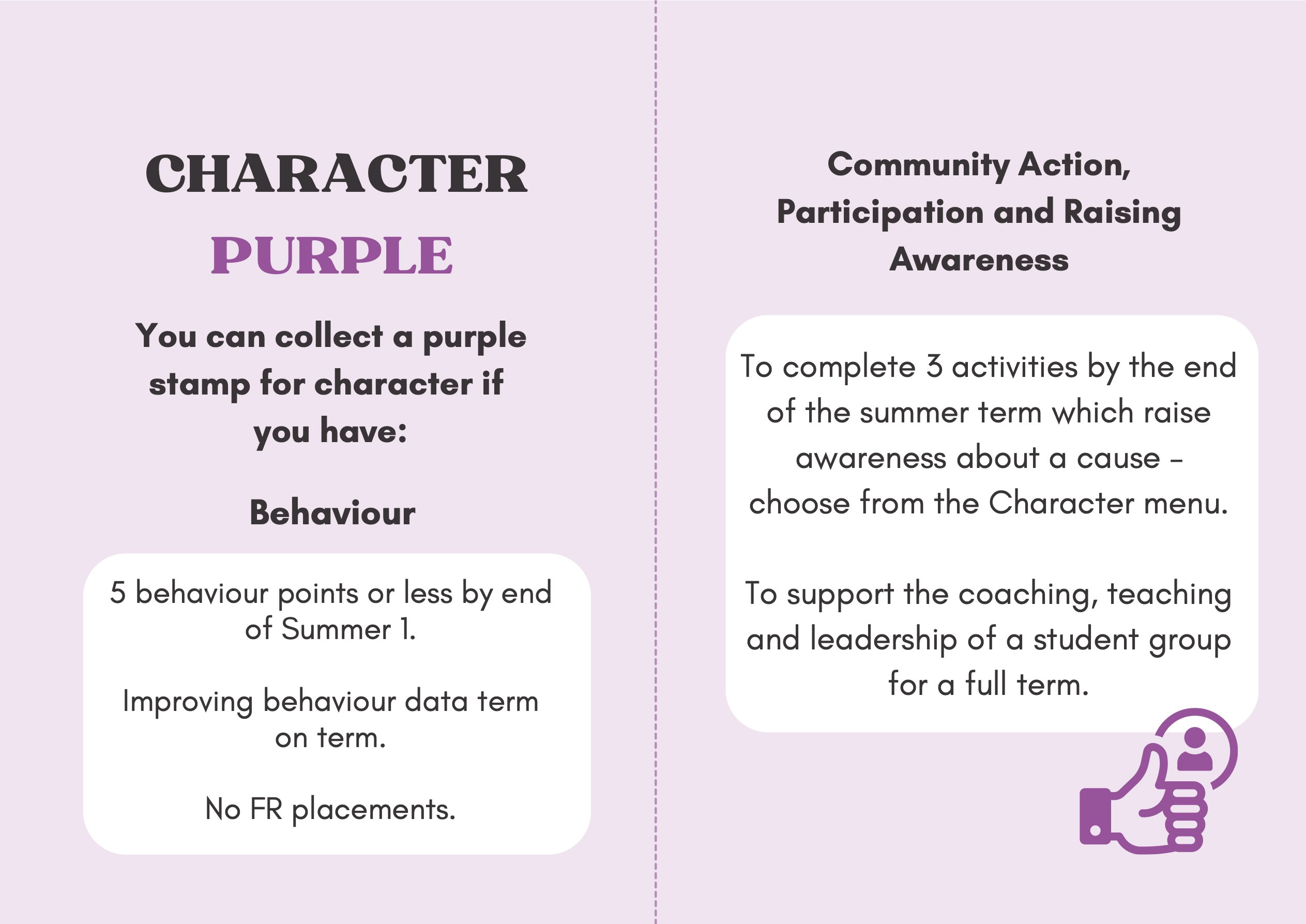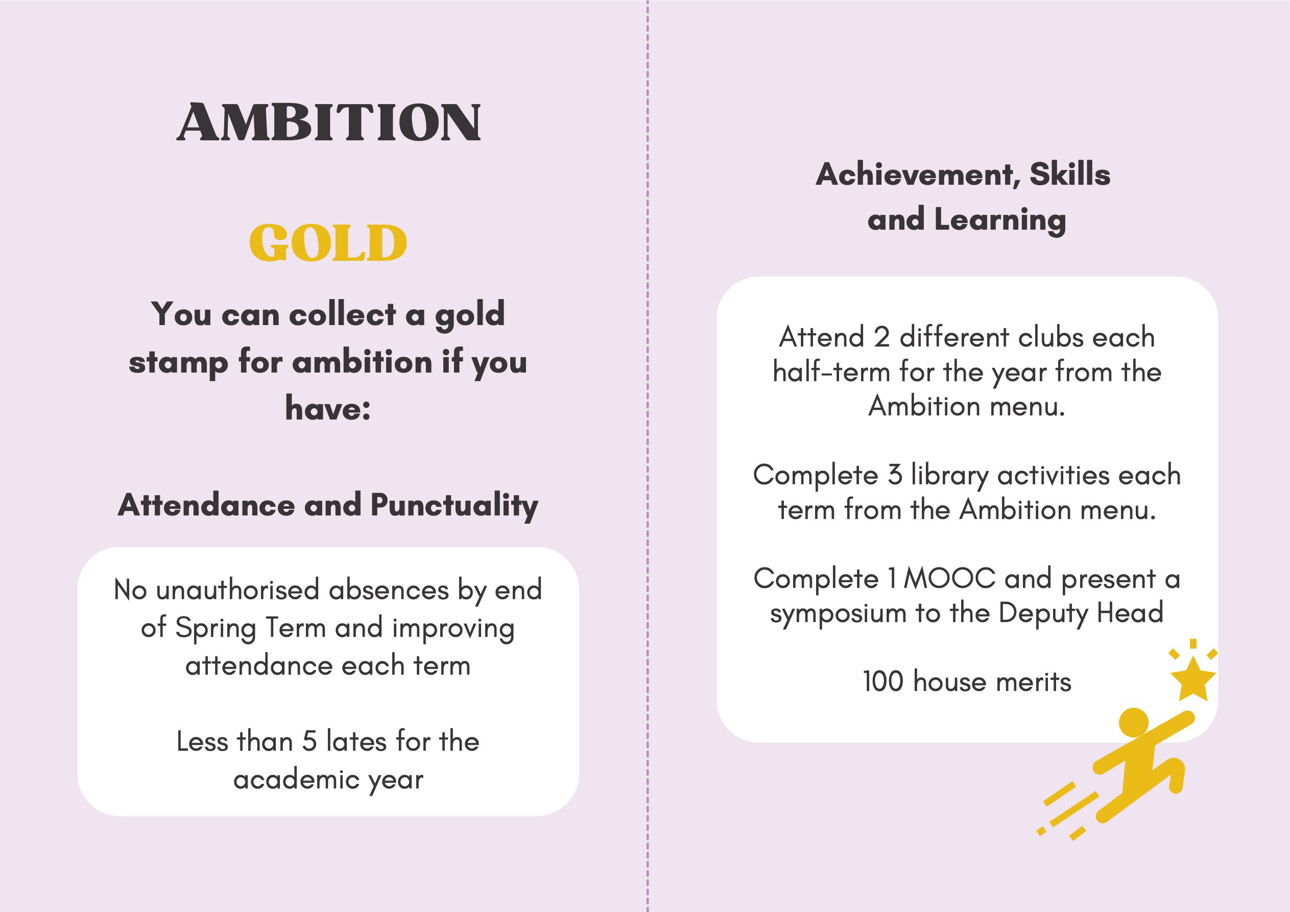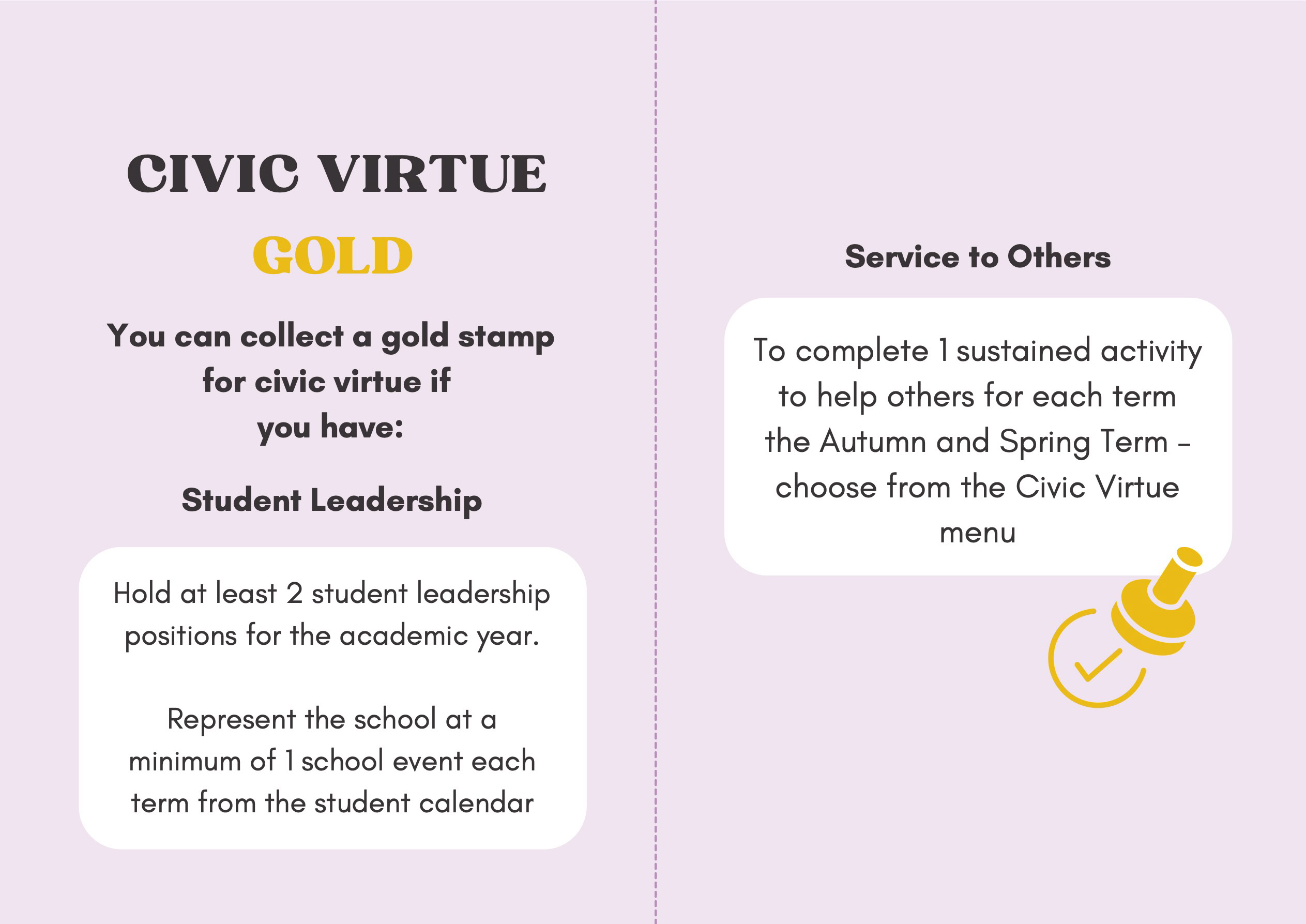 To recognise and celebrate student achievements, the Personal Development Passport is linked to our award system. Students can earn awards at four levels - Bronze, Silver, Gold, and Purple - across three core values: Ambition, Character, and Civic Virtue. Awards are presented at termly celebrations, acknowledging students’ dedication and fostering a culture of active participation.