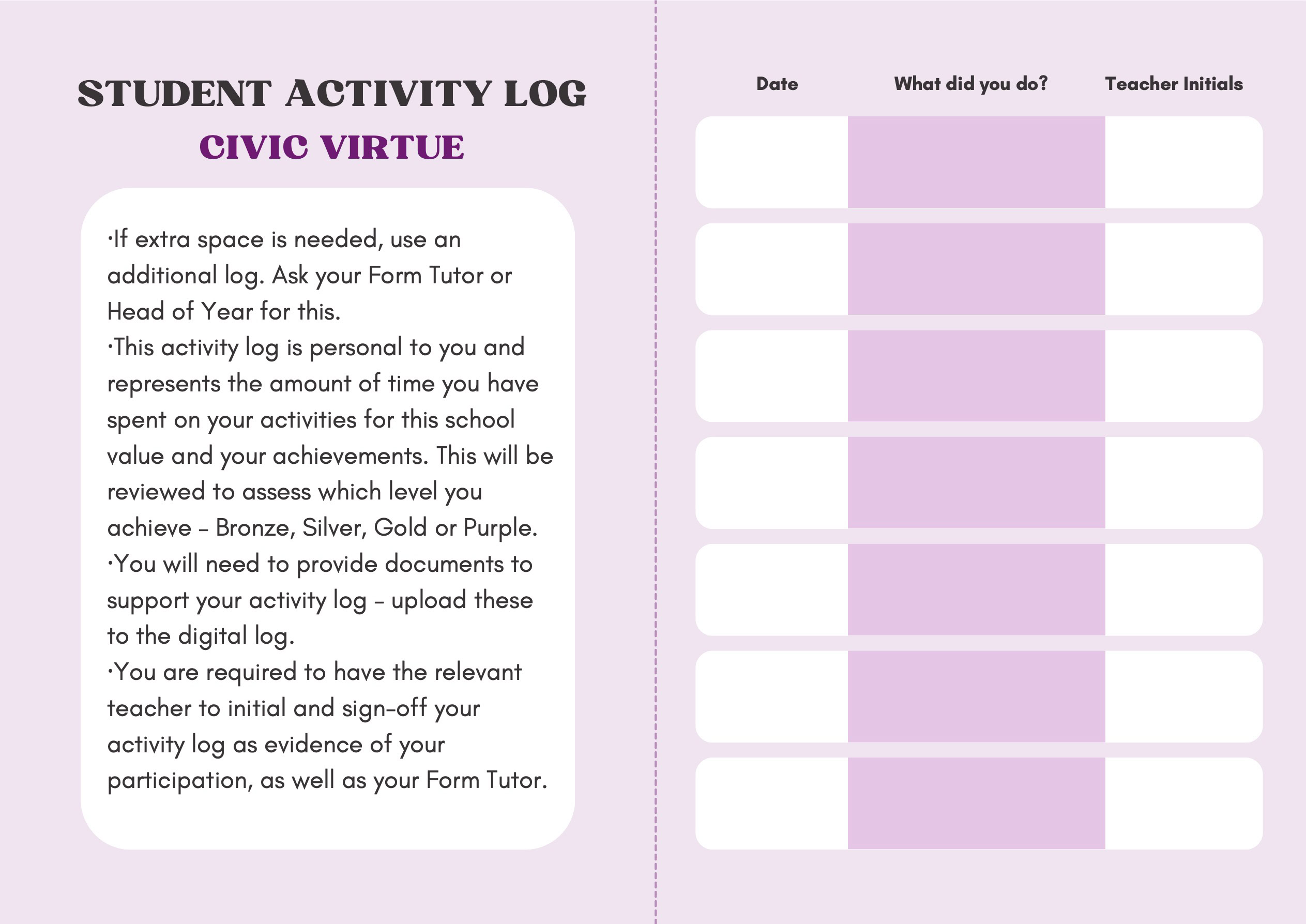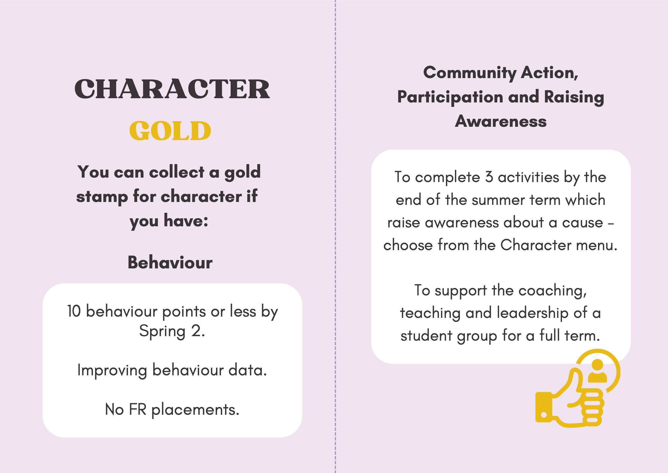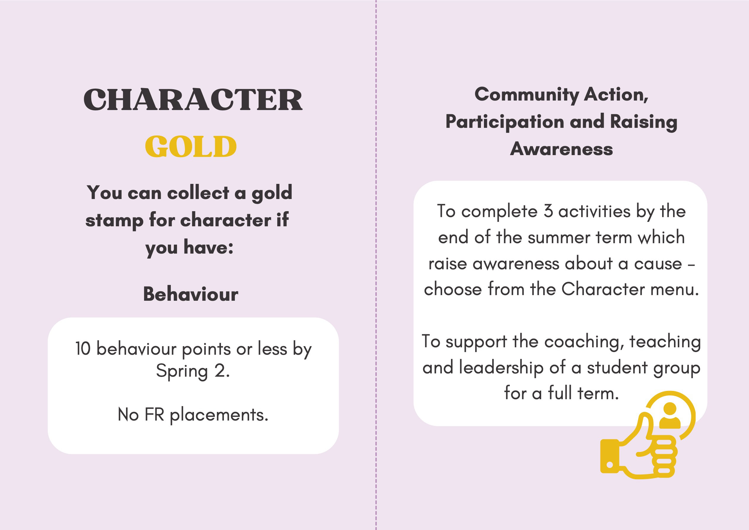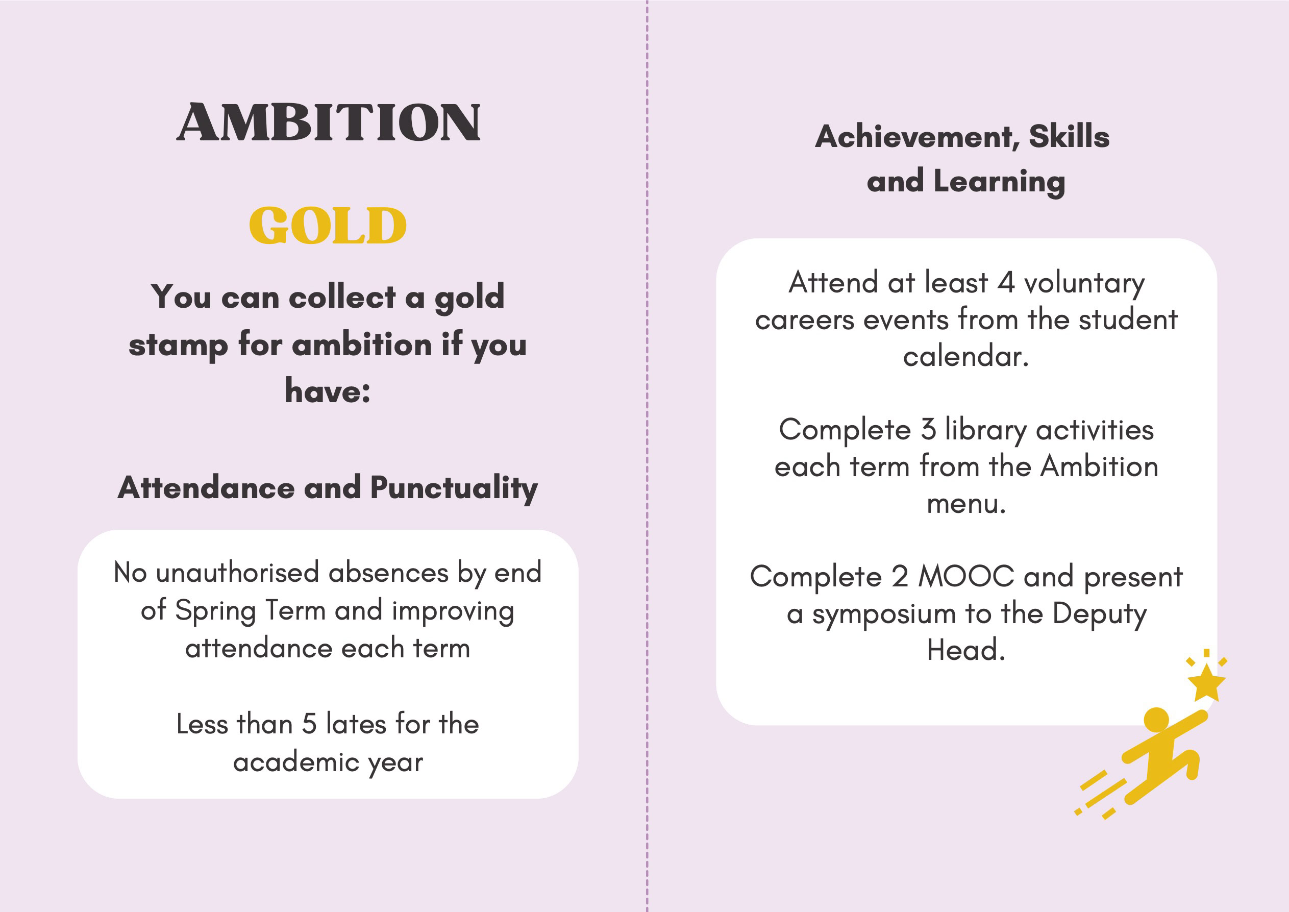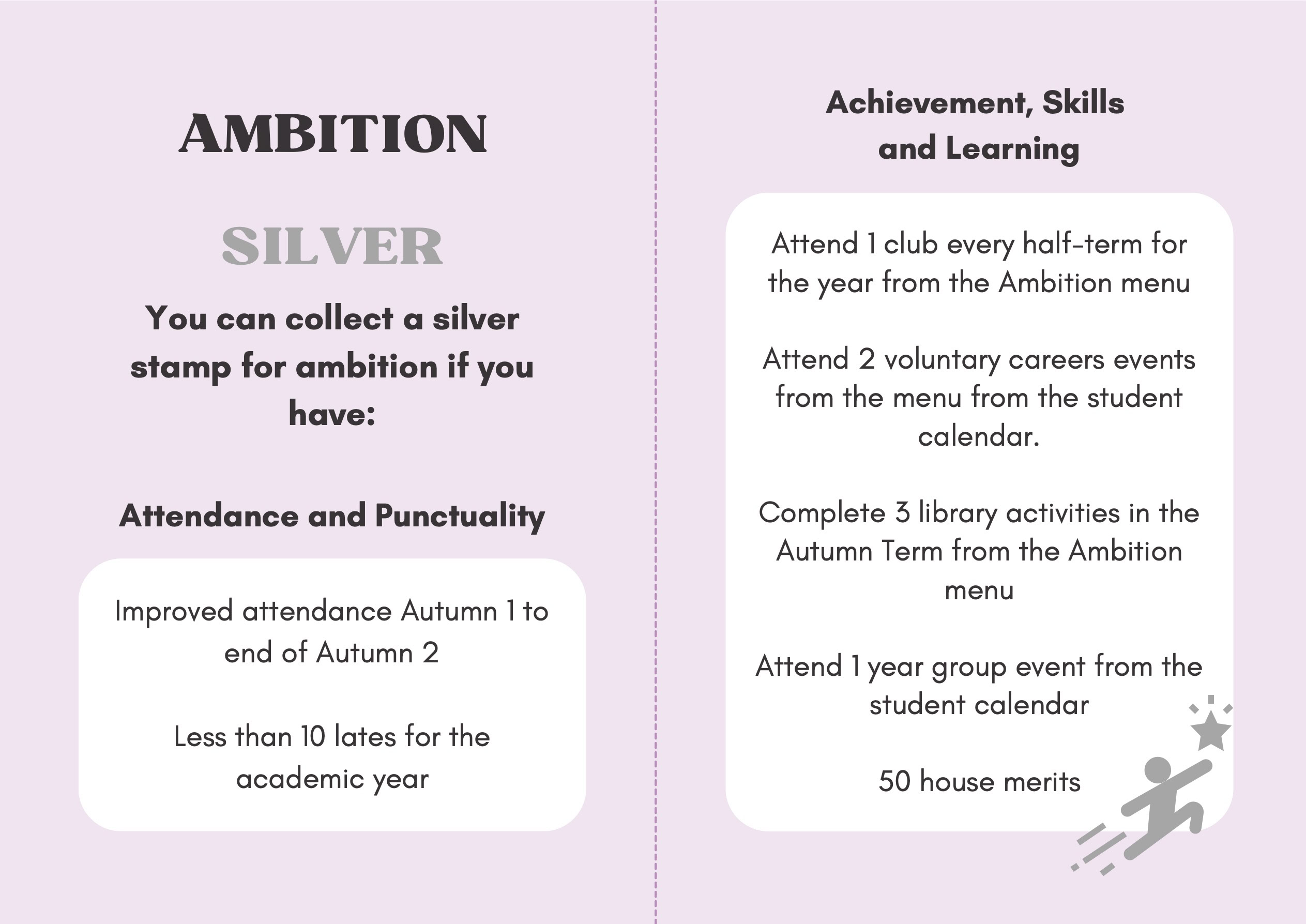 To recognise and celebrate student achievements, the Personal Development Passport is linked to our award system. Students can earn awards at four levels - Bronze, Silver, Gold, and Purple - across three core values: Ambition, Character, and Civic Virtue. Awards are presented at termly celebrations, acknowledging students’ dedication and fostering a culture of active participation.