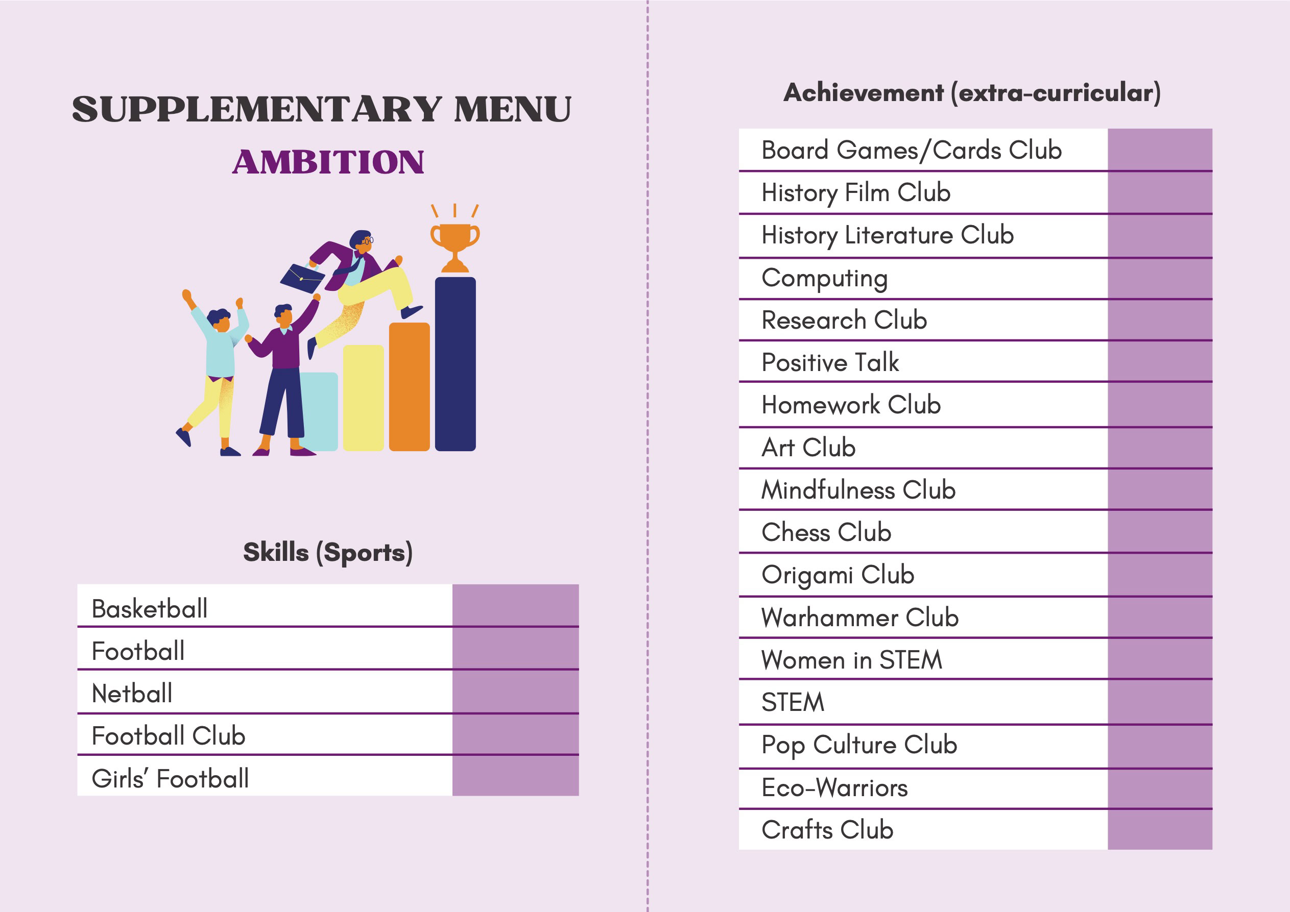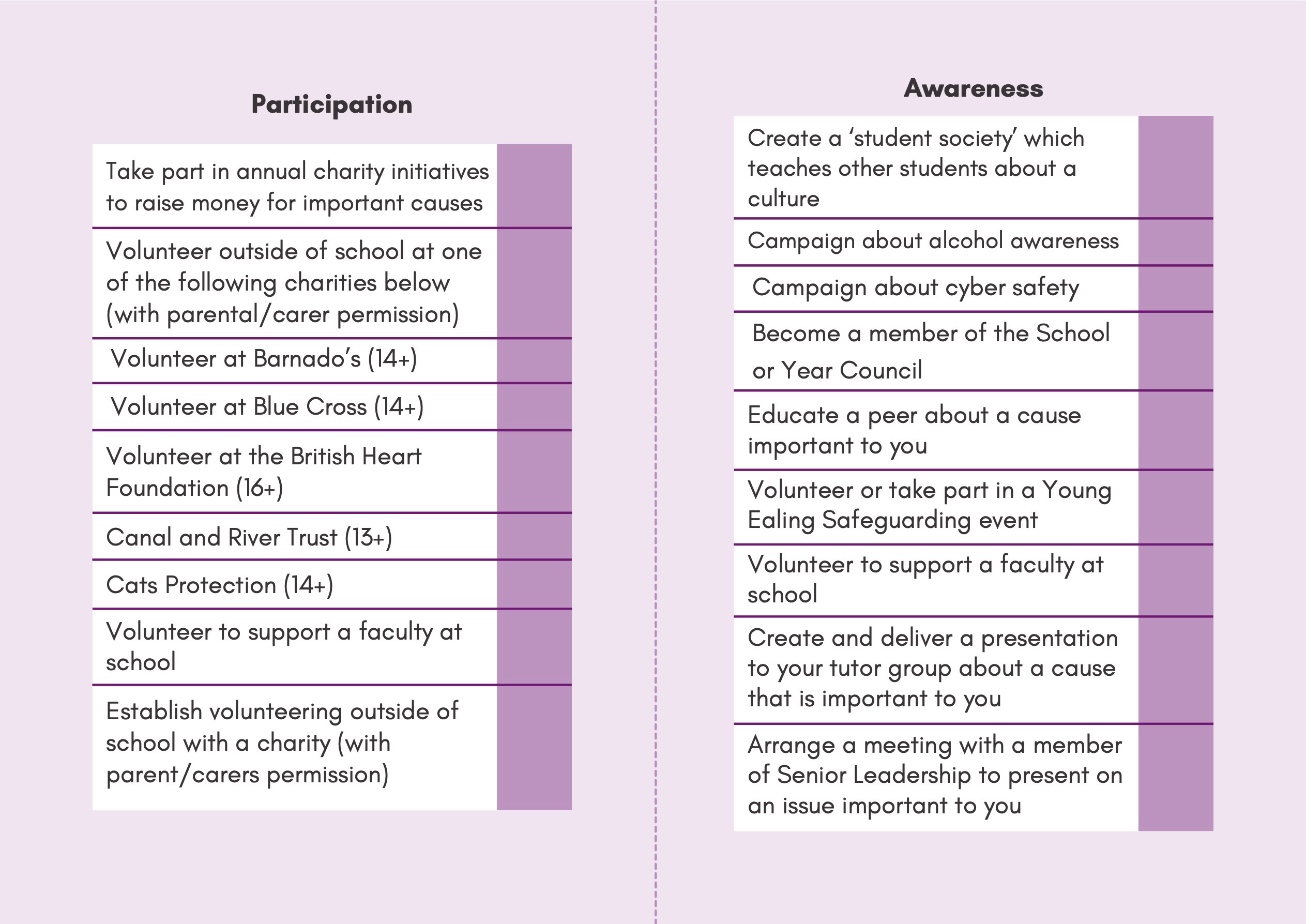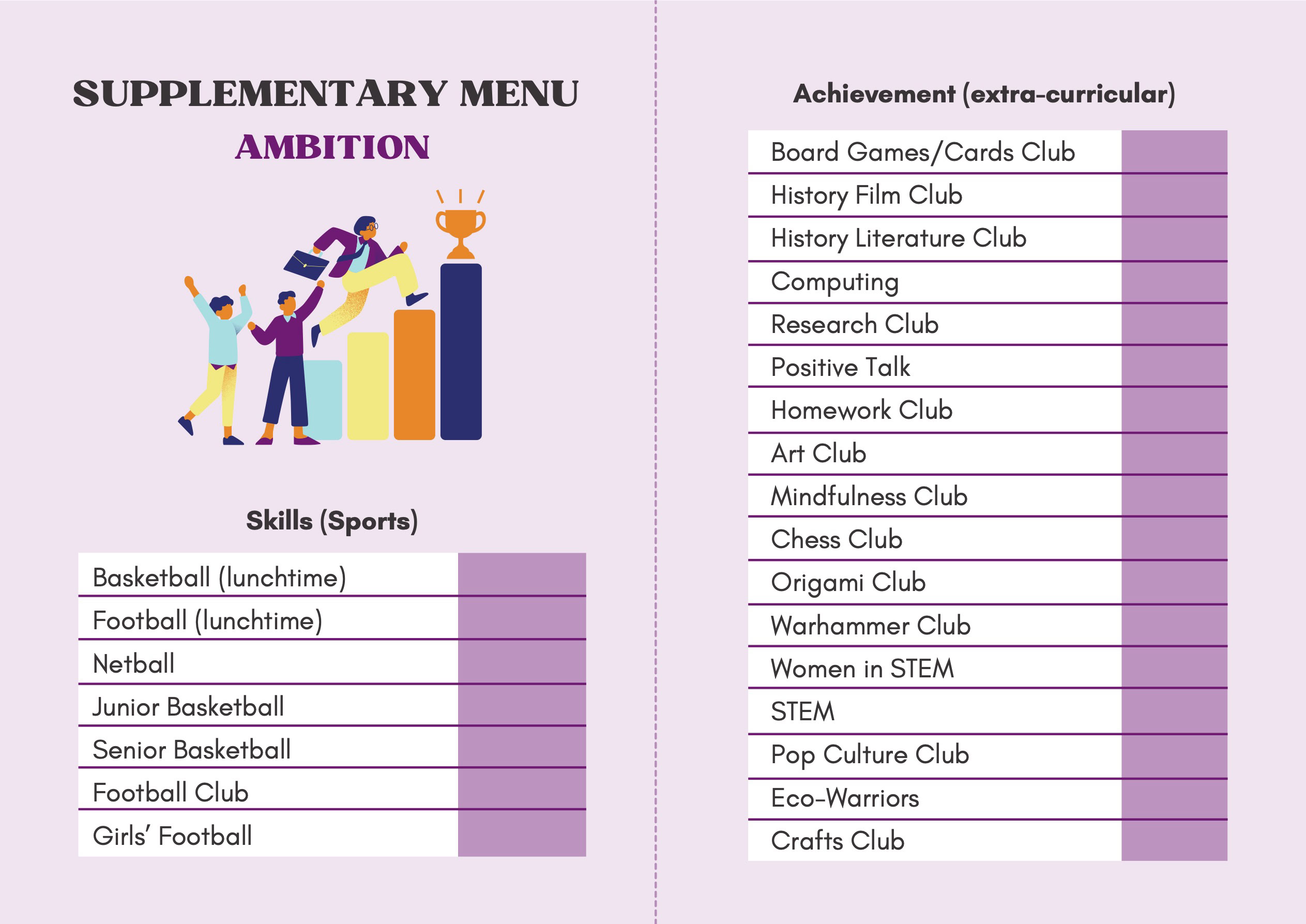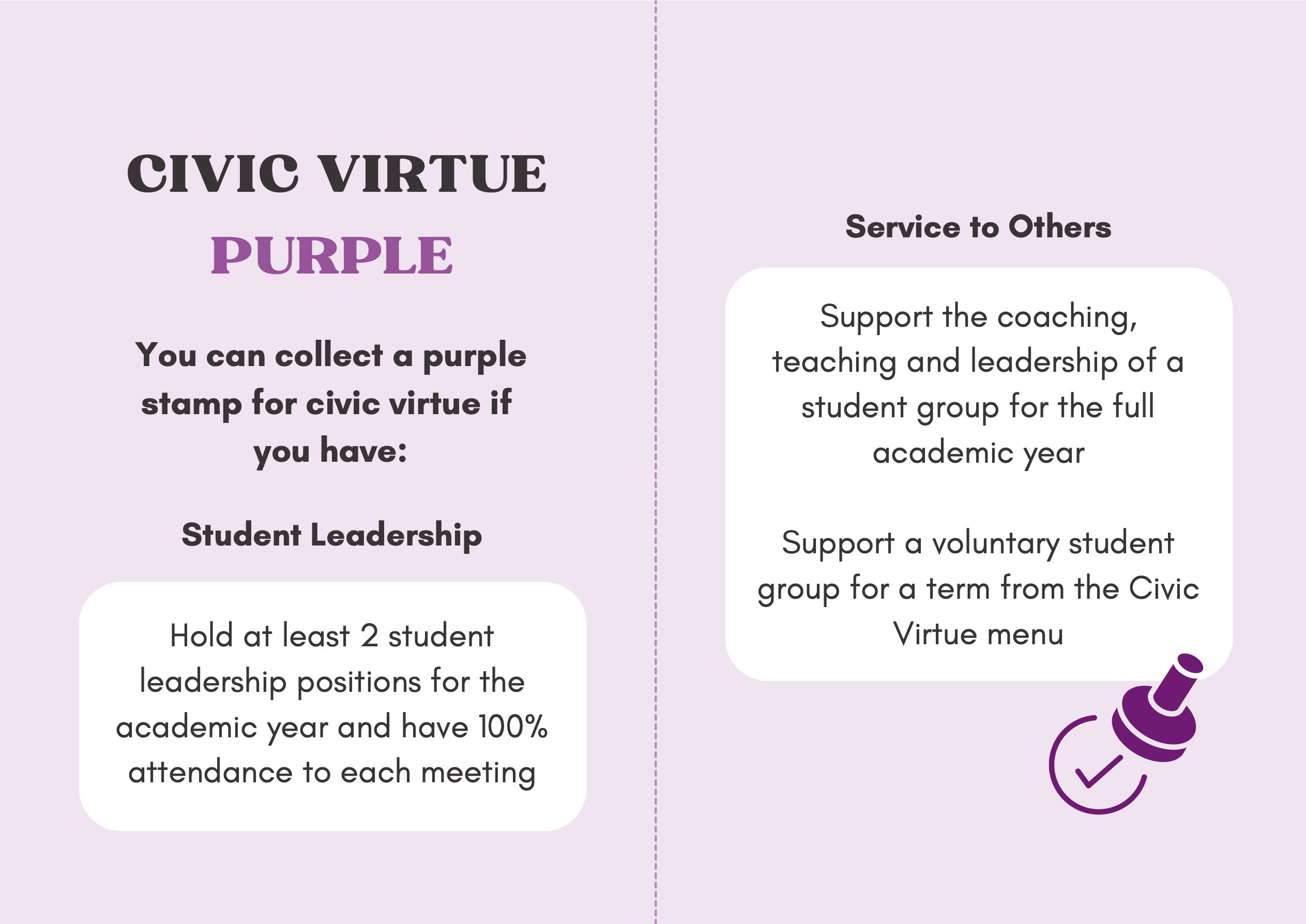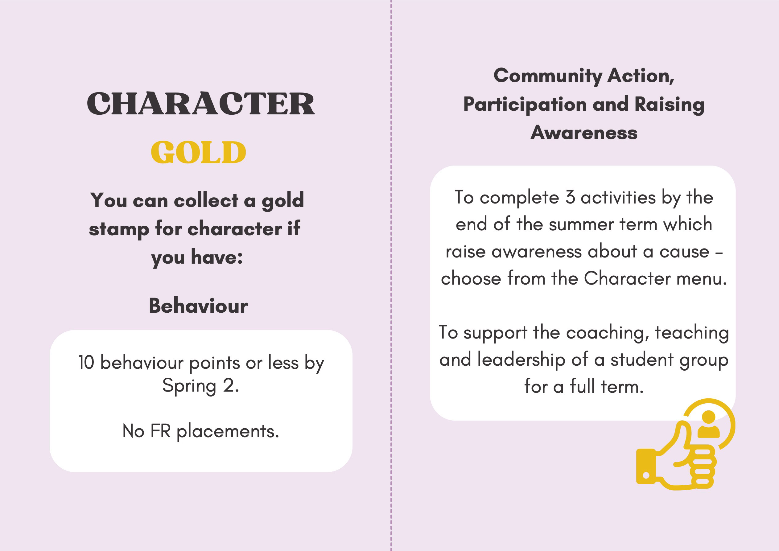 To recognise and celebrate student achievements, the Personal Development Passport is linked to our award system. Students can earn awards at four levels - Bronze, Silver, Gold, and Purple - across three core values: Ambition, Character, and Civic Virtue. Awards are presented at termly celebrations, acknowledging students’ dedication and fostering a culture of active participation.