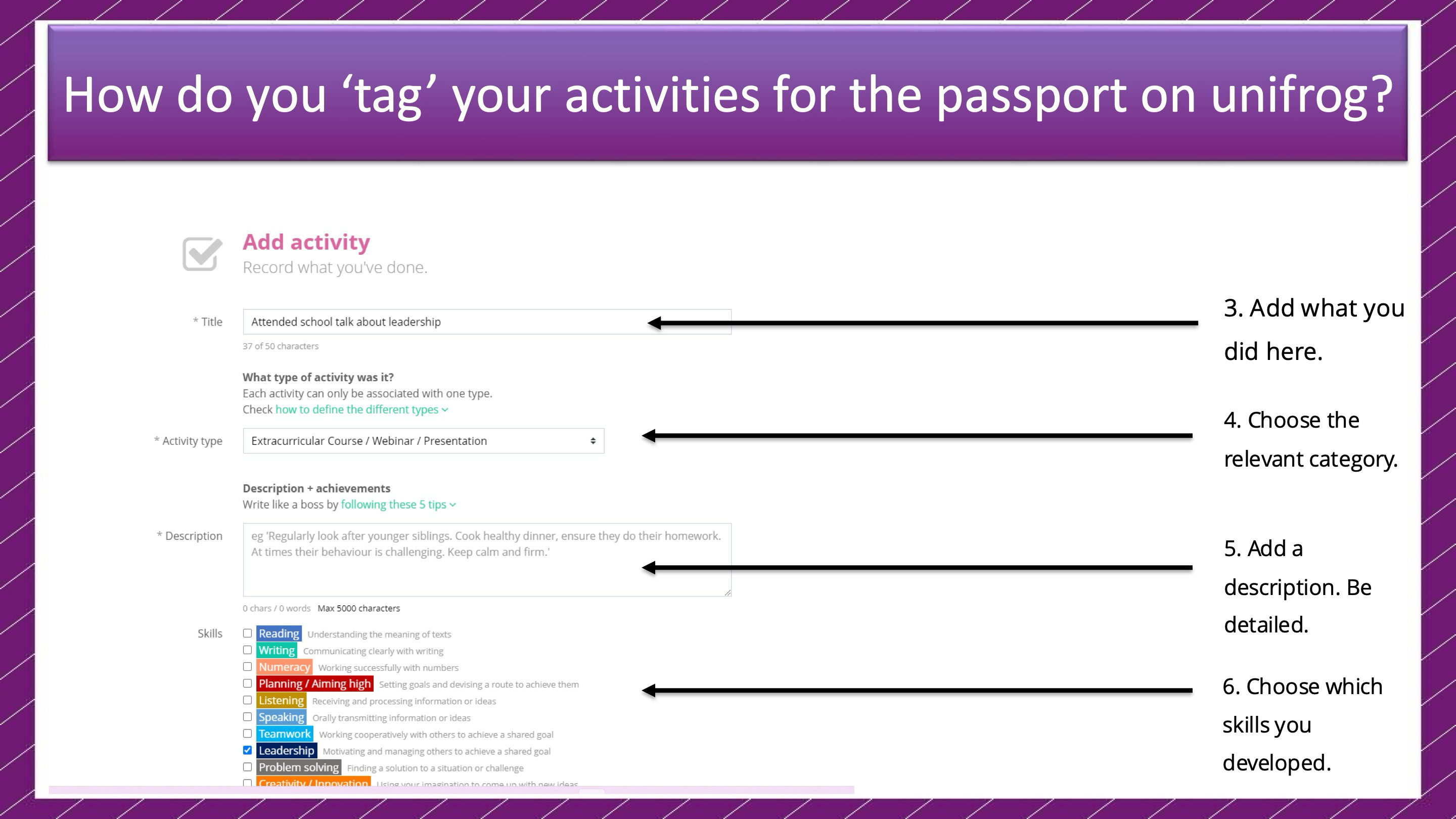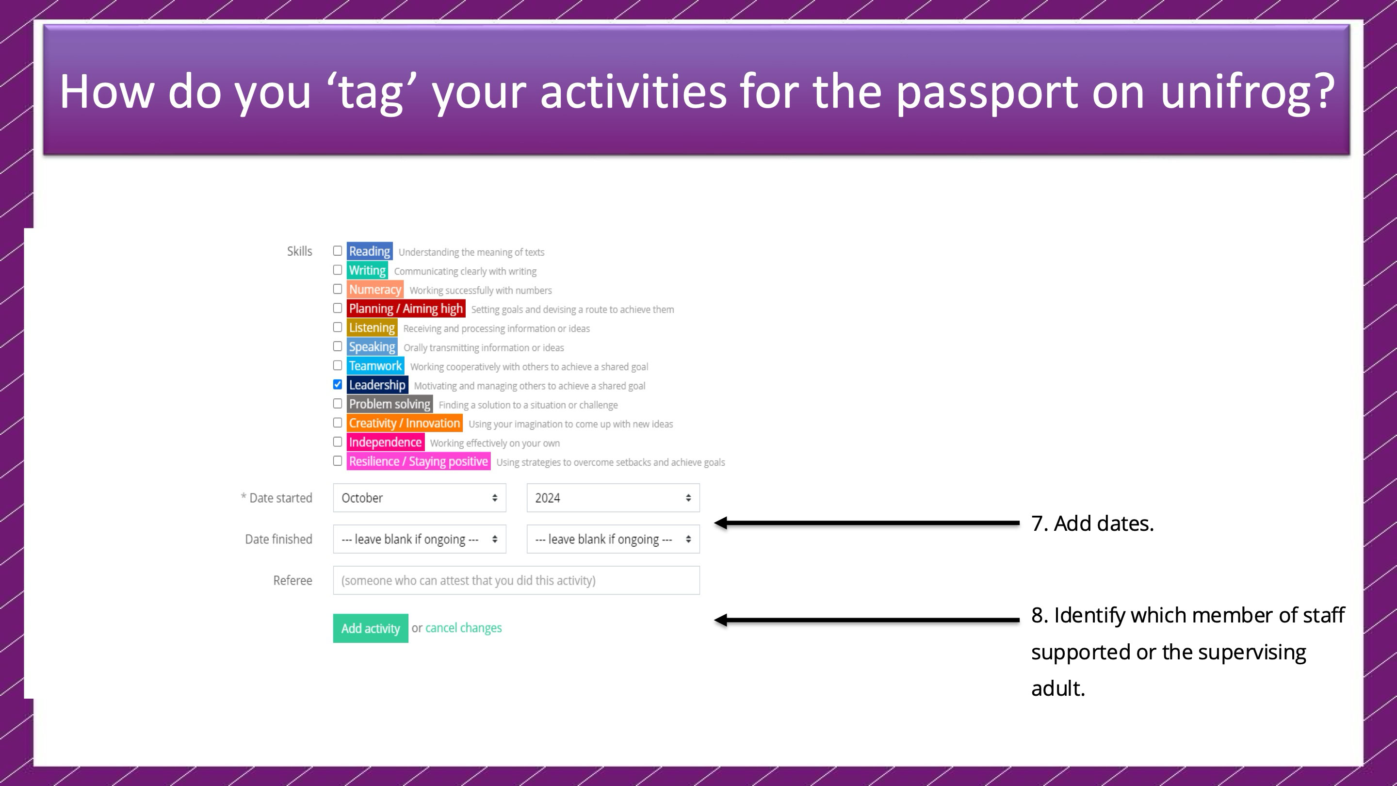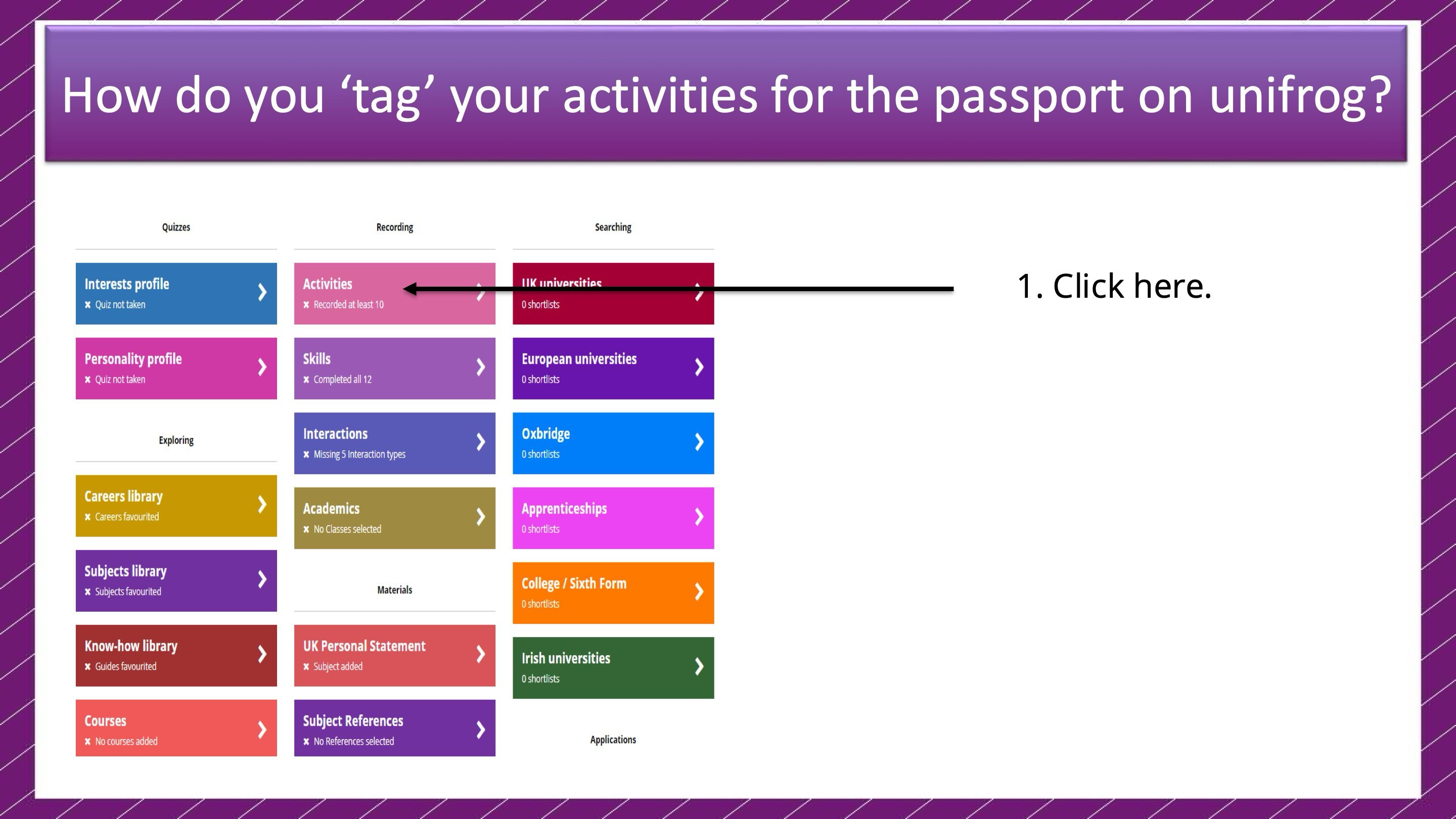 Unifrog is a dynamic online platform that helps students keep track of their achievements, extracurricular activities, and career aspirations. It serves as a digital companion to the Personal Development Passport, providing students with a user-friendly way to document their experiences.